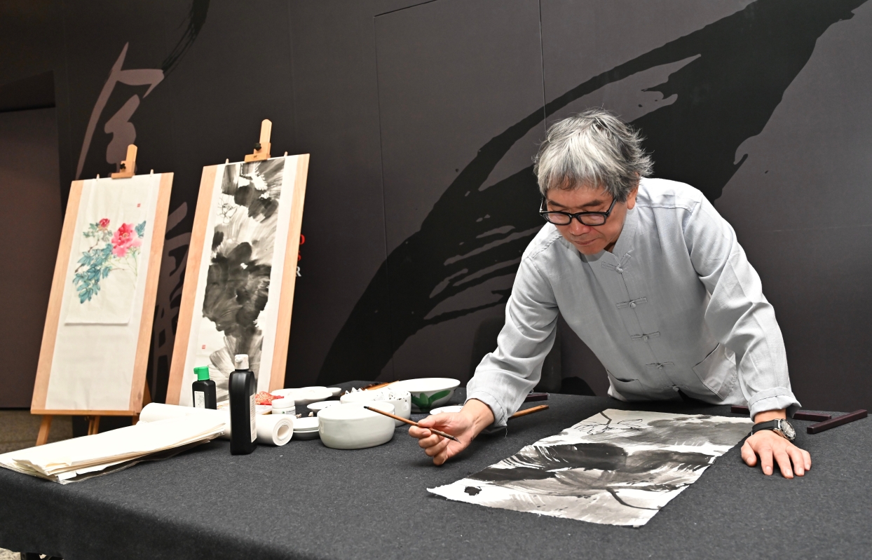 嶺南畫派畫家陳榮森示範繪畫。 陳榮森是別具一格的嶺南畫派畫家,他自1976年起隨趙少昂教授習畫,又曾跟隨不同名師學習傳統中國繪畫、書法和篆刻。他曾於香港、內地及加拿大等地舉辦多次聯合及個人展覽。其作品《荷花小鳥》於2019年入選日本.中國水墨畫合同展,獲頒發外務大臣賞。 陳榮森在傳統水墨的構圖、意境和墨韻上融合富抽象美的現代演繹,在創作上大膽運用潑墨,既突顯他運筆豪邁瀟灑的個人風格,又展現了嶺南畫派“融會古今”的創新精神。精選展品包括《荷花小鳥》、《雨中賞荷》、《蕉風鳥語》及《紅棉彩鳥》。