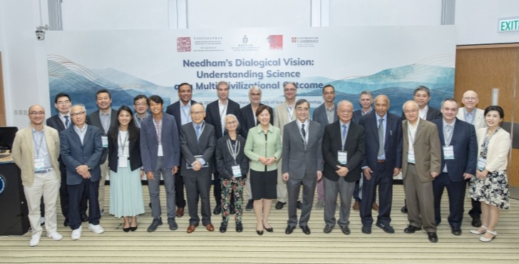 “饒宗頤在澳門故事分享會”主禮嘉賓合照。 分享會主禮嘉賓集合澳港專家、學者,包括全國政協常委崔世昌、全國人大劉藝良、澳門基金會主席吳志良、澳門立法會議員陳浩星、澳門特別行政區教育及青年發展局學生廳代廳長李艷琪、澳門潮屬社團總會創會主席許世元、澳門中華文化交流協會會長李沛霖、澳門大學校長宋永華、香港大學饒宗頤學術館館長李焯芬、香港浸會大學饒宗頤國學院院長陳致、 饒宗頤文化館管理委員會副主席黃景強、饒學研究基金永遠會長饒清芬、饒宗頤學術館之友會長李俊鳴、澳門大學學生事務長彭執中,參與的教育界代表有同善堂中學黃德進校長、東南學校楊燦基校長、陳春新副校長、培華中學李秋林校長、孫詠雅副校長、澳門濠江中學周明副校長,以及一百多位中學生和大學生。 香港大學饒宗頤學術館館長李焯芬教授對澳門、香港師生致鼓勵詞,介紹饒教授2006年親身到黑沙考古現場,以89歲的高齡依然很熱心地關注和指導考古工作,對澳門的故事有一新發現非常雀躍。除了學術研究,藝術方面饒教授亦多次在澳門舉辦個人展覽,從澳門文化中心、澳門藝術博物館到饒宗頤學藝館,饒教授的山水畫、荷花畫都有澳門的影子與故事。祝願同學們可以像饒教授一樣,時常滿懷好奇心與創意,撰寫或創作怡然自樂的佳作。 會上由饒學研究基金永遠會長饒清芬與主禮嘉賓向澳門大學、香港大學和香港浸會大學頒贈委任證書,感謝三所大學對“桑梓嶺南:饒宗頤在大灣區學生比賽”的推動與支持,希望明年可以向大家展示學生的精彩作品。學生比賽獎品、獎金豐富,得力於饒學研究基金的資助。其中,(香港大學)饒宗頤學術館之友李俊鳴會長特別資助在澳門推動教育項目,由澳門特區教育及青年發展局學生廳廳長陳旭偉與饒清芬一同頒發捐贈證書,以示感謝。