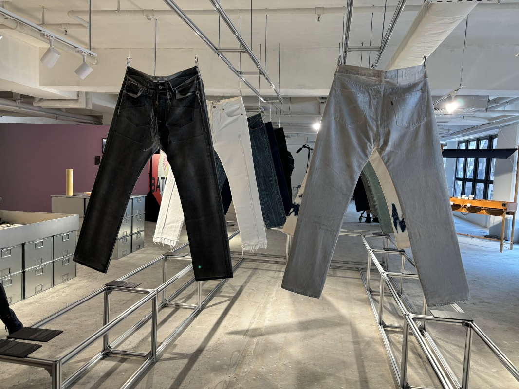 時裝設計師Karmuel Young,他以精湛的時裝設計技巧,重新演繹經典牛仔褲系列。(香港中通社記者 黃璇攝)