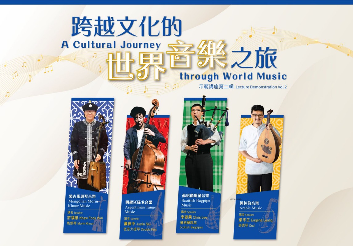 香港新聞網6月26日電 康樂及文化事務署(康文署)8月至9月期間舉辦第二輯“跨越文化的世界音樂之旅”示範講座,介紹蒙古馬頭琴音樂、阿根廷探戈音樂、蘇格蘭風笛音樂和阿拉伯音樂。四場講座由本地中亞樂器都塔爾演奏家及對民族音樂學素有研究的梁宇正擔任節目策劃和主持,並請來多位本地音樂家擔任講者,透過歷史文化介紹、樂器演奏示範,以及親身經驗分享,引領參加者跨越文化界限,欣賞不同地域的音樂特色。