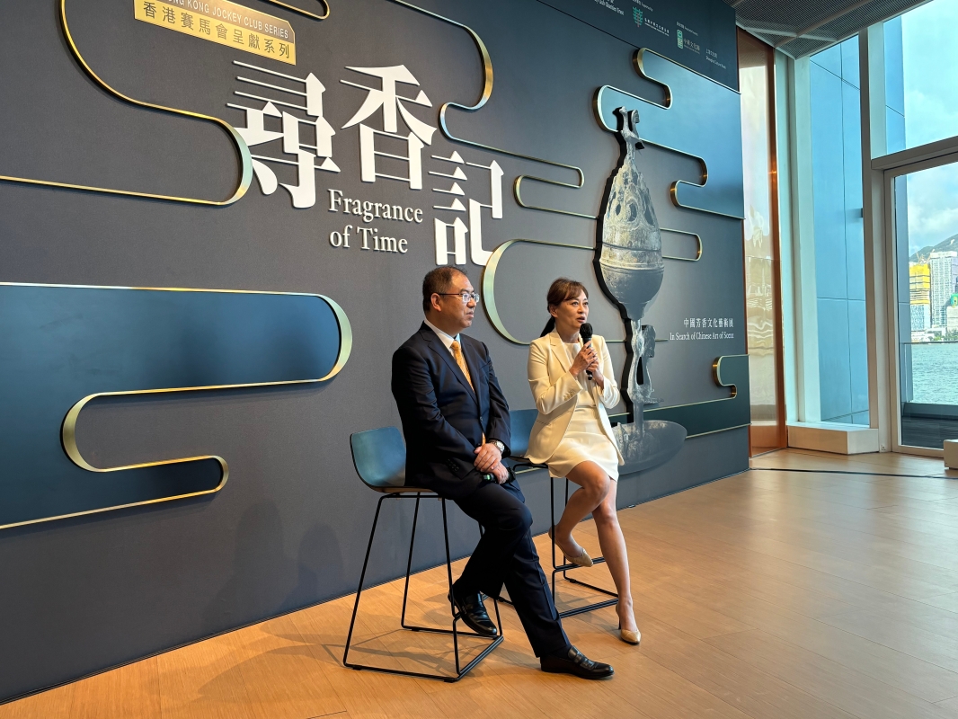 上海博物館副館長陳杰、香港藝術館總館長莫家詠。(香港中通社記者 黃璇攝) 上海博物館副館長陳杰表示,香文化從古至今都與人們日常生活息息相關,所以這次展覽是很好的中華文化體現。他指重點展品明代書畫家陳洪綬的《斜倚薰籠圖》是上海博物館館藏陳洪綬精品之中的精品,他提議觀眾細細欣賞畫中貴族女子斜倚享受香味的姿態。他也提到,今次展覽歷時一年備展,經過雙方團隊的創意碰撞與不斷打磨,呈現的效果令他十分驚嘆:“不只有文物欣賞,還有環境設置方面,也頗費心思,觀眾可以用嗅覺去感知香文化的內涵。”