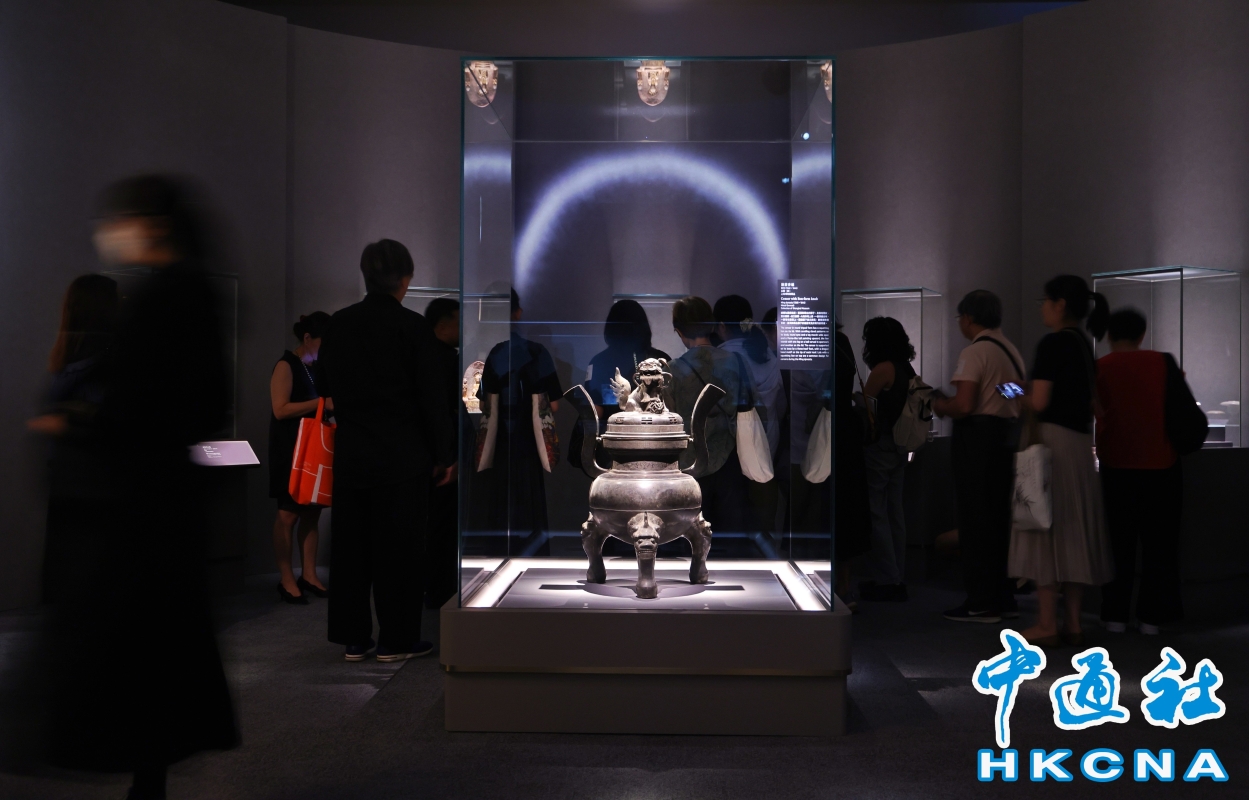 展廳一隅。(香港中通社記者 黃璇攝) 展品涵蓋新石器時期至20世紀的陶瓷、竹刻、繪畫、青銅器等不同品類,來自上海博物館的重點藏品包括兩件首次在香港展出的國家一級文物——明代書畫家陳洪綬的《斜倚薰籠圖》和南梁的釋慧影造釋迦牟尼佛漆金石像,以及13組國家二級文物,來自上海博物館的展品超過一半都是未曾於其他國家或香港展出。 香港藝術館總館長莫家詠表示,今次是與上海博物館第三次合作,除得到上海博物館支持展出國家級文物外,今次更不僅是借展,而是雙方共同策展。她於昨日傳媒預展介紹:“香文化題材展覽比較少有,今次整個展覽可以說是非常療癒,觀眾不僅要用眼看,還要在一呼一吸中去感受香味及其背後文化。”