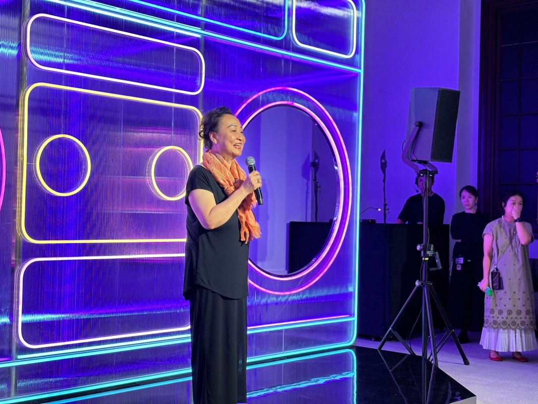 “曲詞印記”展覽場景——靜心室。流動的“瀑布”上展示顧嘉煇及黃霑共同創作的236首歌曲歌名。 大館藝術總監簡寧天(Timothy Calnin)於傳媒預覽上致辭表示:“去年夏季,大館透過‘霓續’霓虹燈展覽,引起香港人的共鳴,讓大眾認識香港獨特而鮮明的霓虹標誌。今年夏季,我們則由視覺轉至聽覺,呈獻另一個同樣關於香港文化,關於顧嘉煇和黃霑這對音樂巨匠所創作的粵語流行曲展演。無論播放於戲院、電視、電台、隨身聽,或是隨著科技發展日新月異的卡式錄音機、黑膠唱片及數碼形式,他們的歌曲印記了數百萬香港人的生活,為這個城市湊出一種具有強烈時代感的音樂流派,屬於這座城市的聲音。”