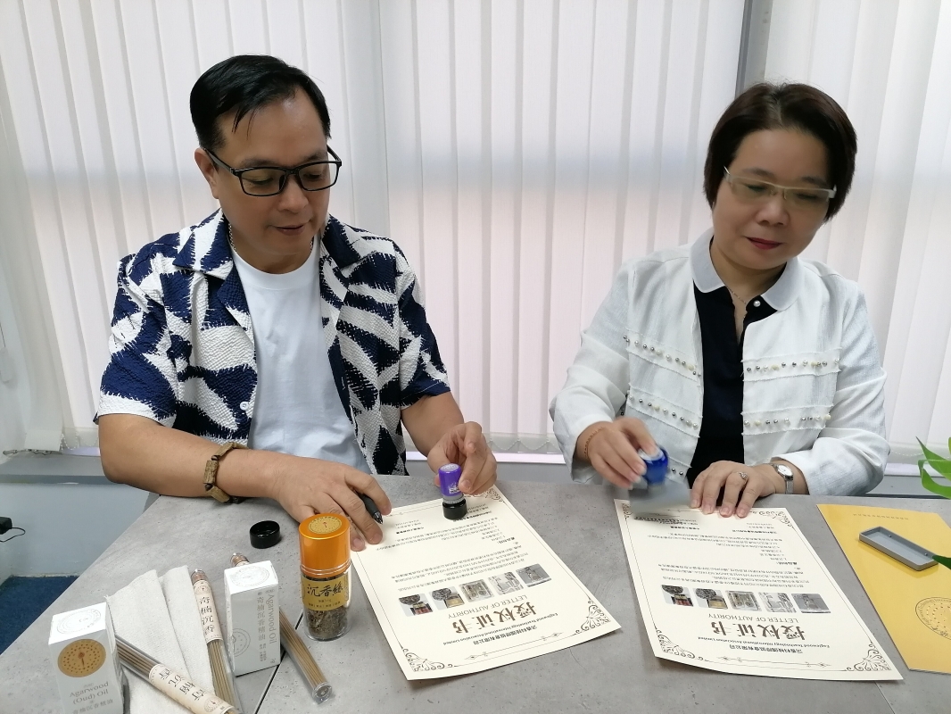 中泰盛大投資集團林梅香董事長(左)與沉香科技國際協會主席洪楚焺