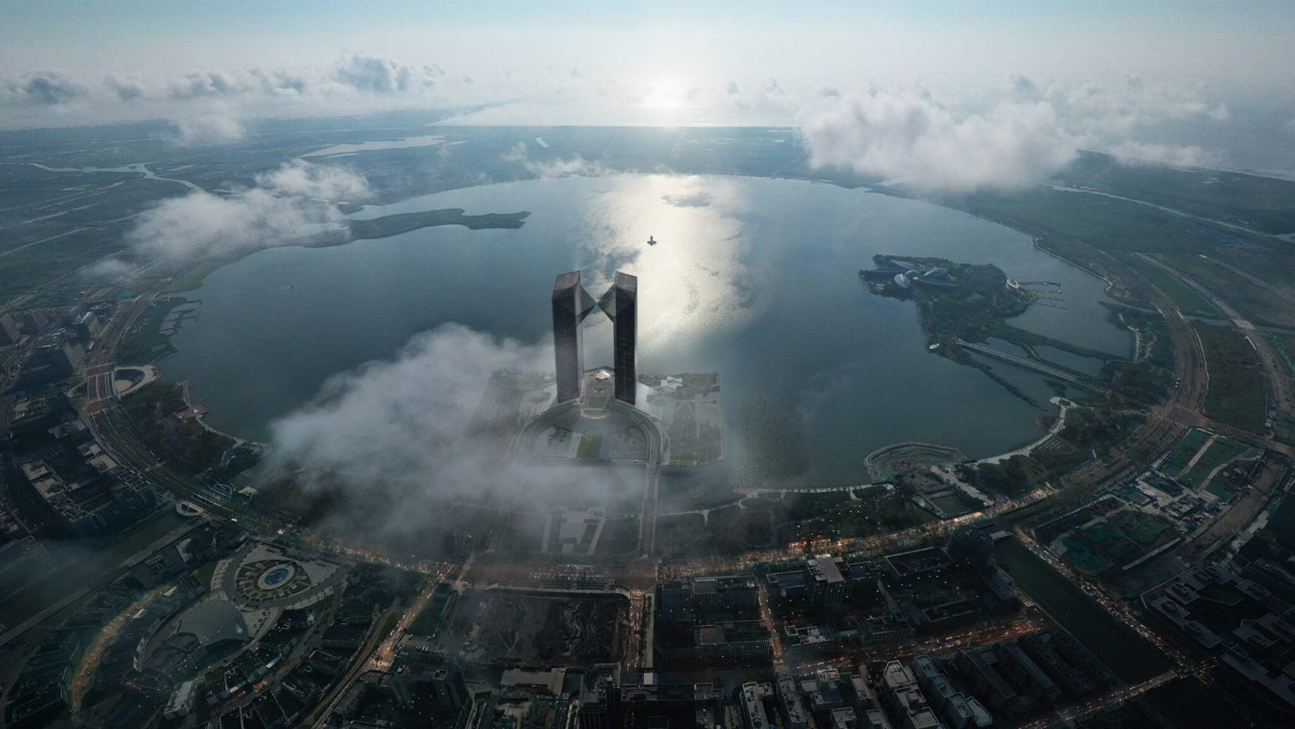香港新聞網10月18日電 “最美的建筑是超越时间的,时间会给出一切答案。”——貝聿銘。儘管貝聿銘已於五年前離世,每有“新作”建成,依然令人驚嘆。這位傳奇華人建築師,以羅浮宮金字塔和香港中銀大廈等作品聞名於世,最近在上海臨港滴水湖上新建的雙子塔再次吸引了公眾的目光。這座名為上海中銀金融中心的建築,目前外立面施工已過半,預計在年底前完成。 這對雙子塔高達200米,成為滴水湖的最高建築,附近居民戲稱其為“雙11大樓”,形象地描述了兩座塔樓相對而立的樣子。更引人注目的是,這一設計早在30年前便已塵封,如今卻以全新的面貌重現。