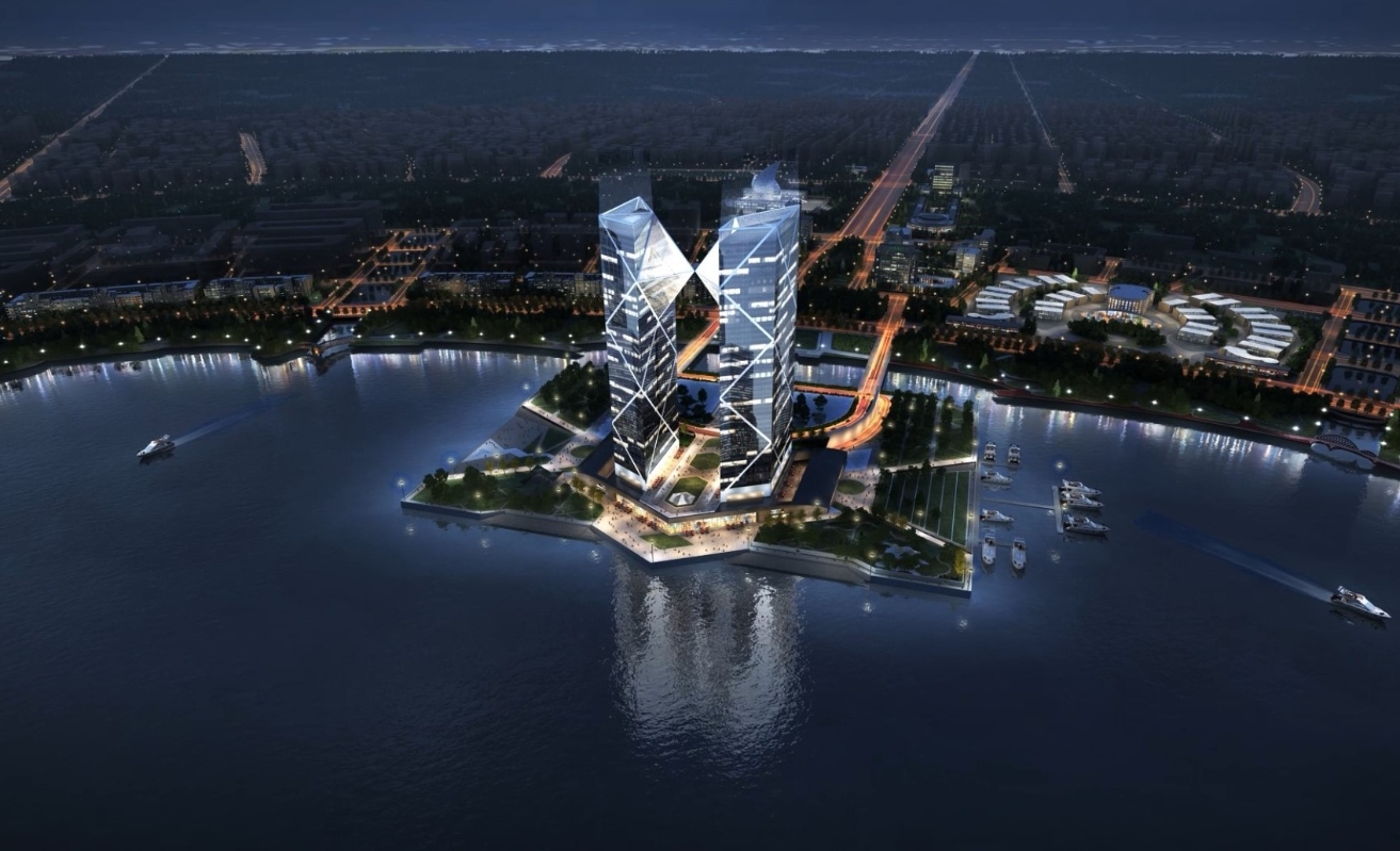 這座名為上海中銀金融中心的建築,預計在年底前完成。效果圖。(圖源:貝氏建築事務所) 上海的“時代之門” 貝聿銘一生榮譽無數,創造了眾多經典作品,包括羅浮宮金字塔、蘇州博物館及多哈伊斯蘭藝術博物館等。即將建成的上海中銀金融中心位於滴水湖西島中央,由兩座200米高的雙子樓和底層裙樓組成,總建築面積約28萬平方米。其功能設計涵蓋商務辦公、五星級酒店和商業空間,底部還設有公園和廣場,為游客和居民提供休閑場所。 建成後,這裡將成為滴水湖的一大地標,俯瞰周圍的湖光山色。建築的外立面設計獨特,X形斜撐構件如同貝聿銘的簽名,展示了其標志性的風格。兩幢塔樓的“面對面”設計,底部相連,形成一種象徵性拱門,寓意著“時代之門,璀璨之珠”的建築理念,向時代致敬。 貝氏家族與中國銀行 貝聿銘的家族與中國銀行淵源深厚,早在1912年,中國銀行成立於上海,而貝聿銘的父親貝祖詒於1914年進入該行工作。1985年,貝聿銘的香港中銀大廈破土動工,儘管遇到多重困難,但最終在1989年順利落成,成為香港的地標。 貝聿銘曾構思在西班牙畢爾巴鄂市建設的“11大樓”也源於此設計,然而由於種種原因未能實現。時隔30年,這一設計如今在上海重見天日,成為全新的雙子塔。