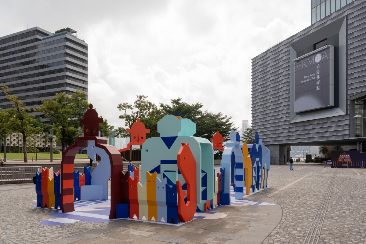 香港新聞網11月1日電 香港藝術館於藝術館前方的藝術廣場推出新展覽“香港藝術家對話系列:越‧悅”,展出本地藝術家團隊STICKYLINE(梁子程、黎意雄)和藝術家麥芷筠共同創作的大型戶外藝術裝置《遊走迷壺間》。 鼻煙壺袖珍玲瓏、精雕細琢、工藝獨特,在小小世界裏各藏着故事。藝術家團隊從香港藝術館內“袖珍.厚禮——浮雲軒藏中國鼻煙壺捐贈展”得到啓發,汲取傳統鼻煙壺的造型及視覺元素,以當代視覺藝術語言重新詮釋,為鼻煙壺惟妙惟肖的動物形象賦予新生命,創作出一個色彩豐富的迷宮,讓觀眾穿梭迷宮內的走廊、拱門探索其中,帶來不一樣的藝術體驗。團隊的創意再造,呈現了鼻煙壺的另一視角,讓觀眾走進異想天開的空間,引發出無限的想像。