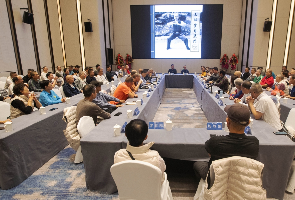 著名武術家萬籟聲之子萬枝鳴(右三)發言,分享與洪敦耕師弟的舊事