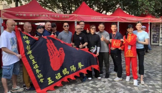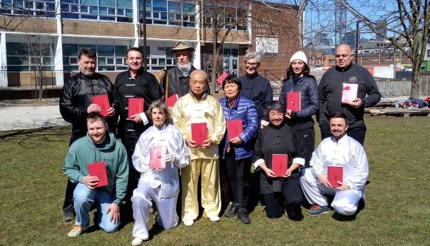 自然門傳人辜建良(左二)分享洪敦耕師兄的“文武醫道拳”