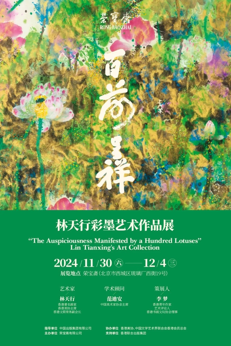 中國傳媒大學中國畫研究院微信公號 展覽名稱 百荷呈祥——林天行彩墨藝術作品展 藝術家 林天行 學術顧問 范迪安 策展人 李夢 展覽時間 2024年11月30日至12月4日 展覽地點 榮寶齋(北京市西城區和平門外琉璃廠西街) 指導單位 中國出版集團有限公司 主辦單位 榮寶齋有限公司 協辦單位 香港美協 中國文學藝術界聯合會香港會員總會 支援單位 香港聯合出版集團