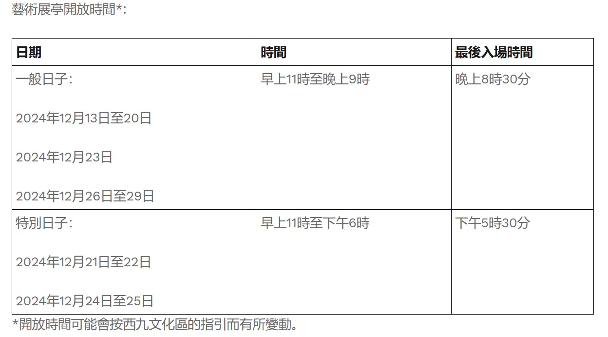 藝術展亭開放時間。 互動藝術及音樂表演 為慶祝大華銀行的60周年,特別設計的互動藝術裝置“甲子同行 連結未來”將展示不同年齡參與者對未來的期望。參觀者不僅可以分享自己的想法,還能透過擴增實境技術欣賞書法作品。 在12月21日至28日期間,“墨韻樂揚”即興音樂表演將由來自不同背景的藝術家呈現,為觀眾帶來視聽雙重享受。 了解更多詳情可訪問主辦方網址www.artininkfestival.com.hk。 【編輯:黃璇】