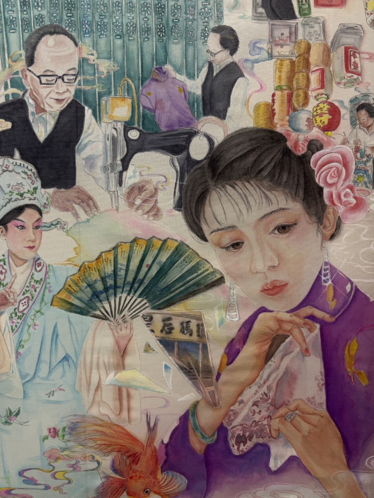 鄒璐表示,創作時非常沉醉其中。尤其是勾勒局部細節。(香港中通社記者 黃璇攝) 中六學生鄒璐憑藉作品《我思我城》榮獲2024年“最具潛質藝術家年獎”及高級學生組的山水風景或具象金獎。她的作品融合了香港獨特的文化景觀,並融入戲曲、舊式茶樓、舞龍舞獅等傳統元素,展現了她對傳統文化的熱愛。部分象徵性元素,如破碎的頭盔,象徵對傳統文化的懷念與堅守;而被困在鳥籠內的雀鳥則象徵著傳統與現代之間的掙扎。 鄒璐表示,希望藉此作品促使觀者思考傳統與現代的關係,以珍惜和傳承文化遺產,“我希望喚起人們對過去的珍視,讓我們在快速變遷的世界中找到熟悉的溫暖。”她巧妙運用絹作為創作材料,增添了作品的情感共鳴,這種技術的探索展現了她對水墨藝術的深刻理解和掌握,獲得評審一致好評。 為支持歷屆獲獎藝術家,大華銀行宣佈成立“大華銀行藝術家校友網絡”。該網絡旨在幫助東南亞和中國(包括香港)的獲獎藝術家尋找更多機會,並促進跨區域的藝術聯繫與合作。 該網絡將在以下四個主要領域加強對得獎藝術家的支持: • 在印尼雅加達舉行的Art Jakarta和在香港舉行的Art Central等主要平台舉辦藝術展覽; • 進行藝術創作委託以供展示和拍賣; • 海外藝術家駐村計劃; • 與藝術界和藝壇領袖建立聯繫的機會。 2024年“大華銀行年度水墨藝術大獎”得獎作品展將於今日(13日)起至本月29日在西九文化區藝術展亭舉行,這是第三屆“大華銀行水墨藝術節”的重點活動。除了得獎作品展外,水墨藝術節還將包括“水墨遊園”嘉年華攤位遊戲、水墨藝術工作坊、互動藝術裝置“甲子同行 連結未來”、以及即興音樂表演等。公眾可參加,入場需提前登記(按此登記)。(完) 【編輯:黃璇】