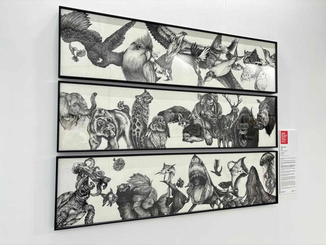 黃家希《動物的呼喚》榮獲高級學生組—山水風景或具象銀獎。(香港中通社記者 黃璇攝) 大華銀行(香港)行政總裁鄭濬表示:“‘大華銀行年度水墨藝術大獎’在推動水墨藝術的發展和演變方面發揮了關鍵作用,讓更多人欣賞這一傳統媒介,並認識本地藝術人才。我們通過舉辦藝術比賽,加強社區聯繫、促進跨文化交流,並推動社會可持續發展。與志同道合的人士和機構合作,我們致力提升水墨藝術在當代社會的地位,並成立‘大華銀行藝術家校友網絡’,為本地及亞洲區內的得獎藝術家提供長期支持。” 鄒璐獲頒最具潛質藝術家獎