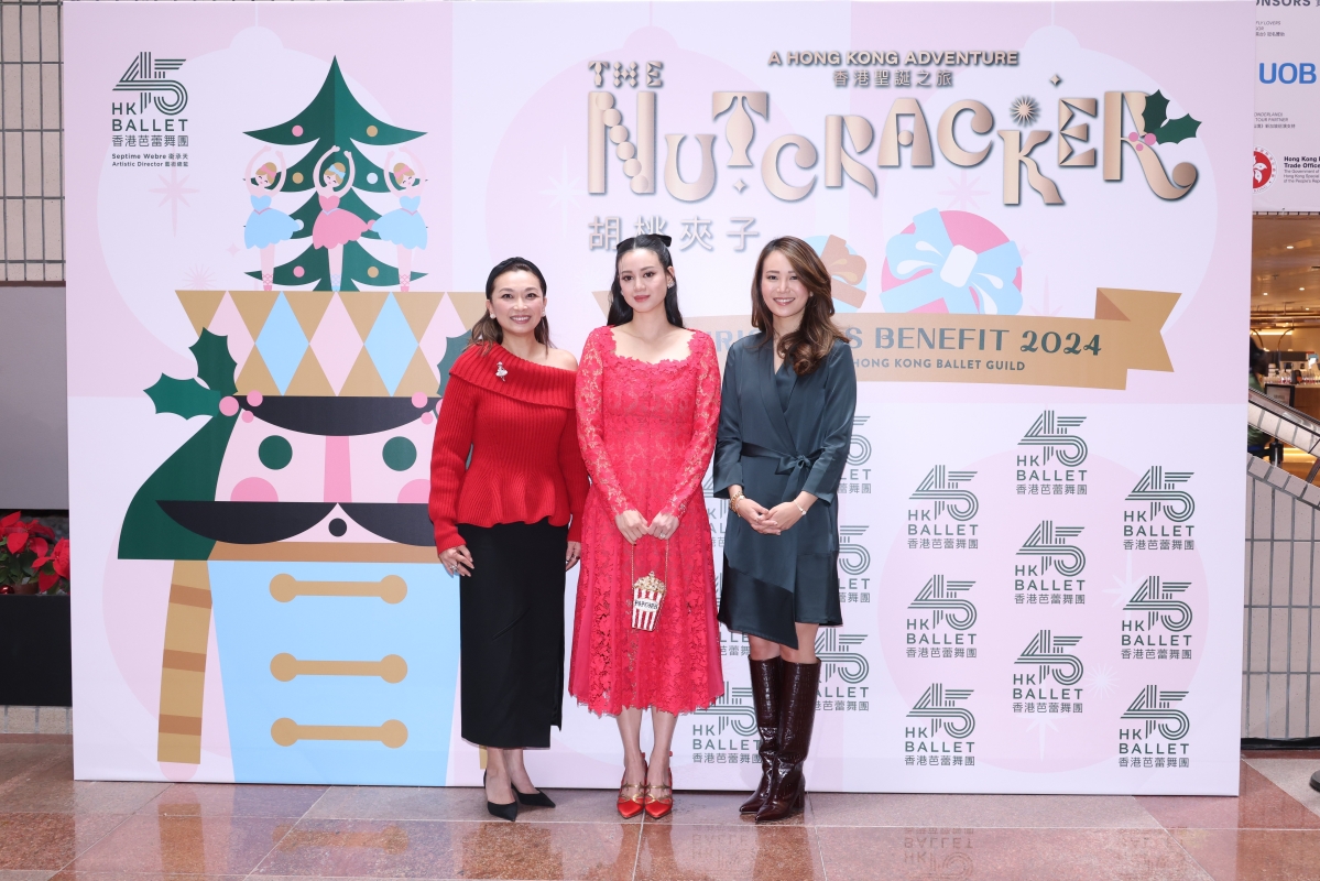 2024《胡桃夾子》聖誕芭蕾慈善籌款活動聯合主席:黃以利(左起)、何林恬兒、崔懷俠。(港芭供圖)