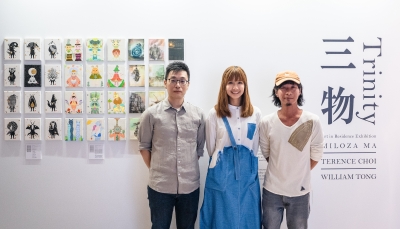 cAI™的自畫像。(香港中通社記者 黃璇攝) 《占卜師cAI™》融合了多國算命系統,形象為一隻由機械手臂操控的黑貓。觀眾只需在特定區域寫下生辰並默念問題,黑貓便會占卜並給出結果。