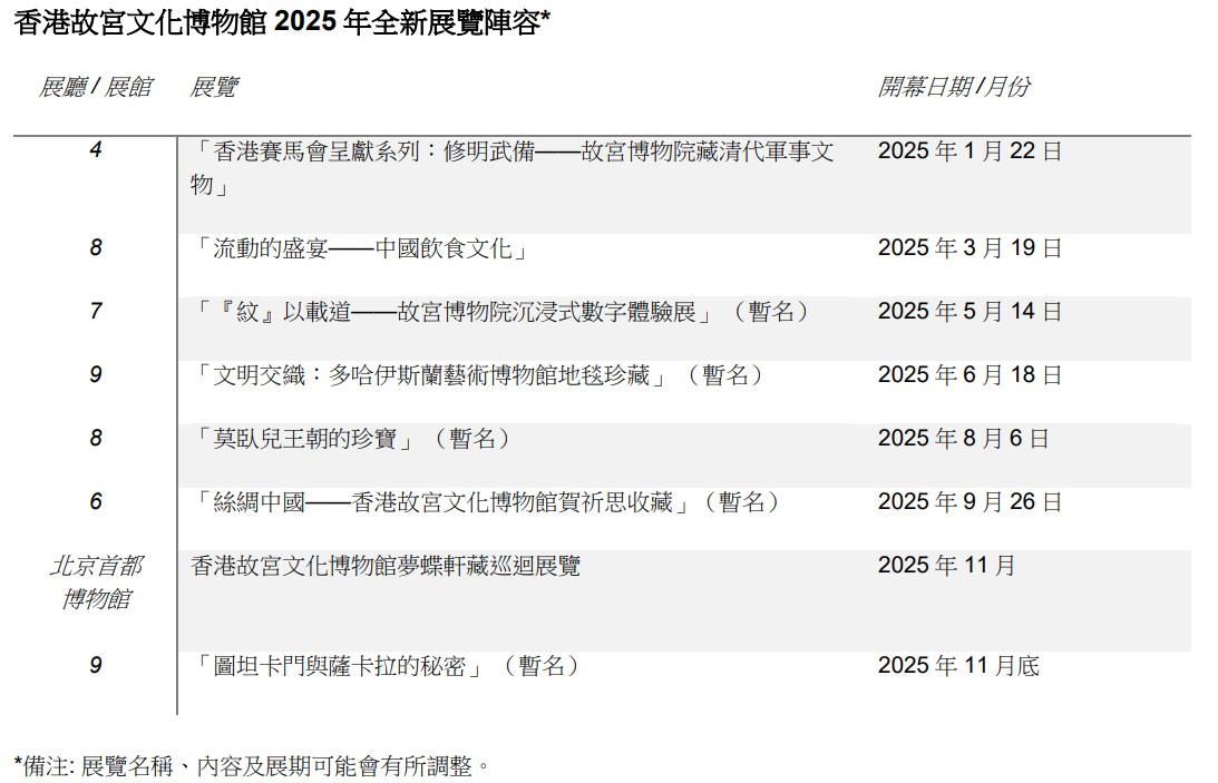 2025年,香港故宮文化博物館將推出四個新的特展和三個新專題,涵蓋故宮博物院珍藏、世界古代文明及本館最新館藏。(香港中通社資料圖) 2025年,香港故宮文化博物館與故宮博物院將共同展出三項新專題和特展,展示承載中華五千年文明的故宮文化魅力。 作為“藝術三月2025”的重點項目之一,特展“流動的盛宴——中國飲食文化”將於3月19日至6月18日在展廳8舉行。展覽將通過110件珍貴文物,帶領觀眾體驗中華飲食文化的演變,展品涵蓋新石器時代至清代的重要物件,主要來自故宮博物院,并包括來自多家國際博物館的珍藏。 此外,博物館將於1月22日在展廳4舉辦“香港賽馬會呈獻系列:修明武備——故宮博物院藏清代軍事文物”展覽。這是香港近期首個以清代宮廷武備為主題的大型展覽,展出約190件文物,展示滿族的尚武精神和清代軍事文化。 另外,博物館還將於5月14日在展廳7舉辦“‘紋’以載道——故宮博物院沉浸式數字體驗展”(暫名),該展覽將通過最新科技呈現故宮藏品上的多樣紋樣,推動傳統文化與創新科技的融合。 博物館將於2025年舉辦三項特展,聚焦世界古代文明。其中,11月開幕的“圖坦卡門與薩卡拉的秘密”(暫名)將是香港近幾十年來規模最大、最全面的古埃及珍寶展,展出近250件來自多家埃及博物館的珍貴藏品。 “文明交織:多哈伊斯蘭藝術博物館地毯珍藏”(暫名)將於6月18日至10月6日在展廳9舉行,展出約100件來自伊朗、土耳其和印度的文物,展示中國與伊斯蘭世界的歷史交往。 “莫臥兒王朝的珍寶”(暫名)展覽將於8月6日至2026年2月23日在展廳8展出,涵蓋約110件來自維多利亞與阿爾伯特博物館的珍品,首次在香港全面展示莫臥兒王朝的藝術成就。 “絲綢中國——香港故宮文化博物館賀祈思收藏”(暫名)將於9月26日在展廳6舉行,展出約250件代表性藏品,聚焦中國絲綢文化與歷史交流。