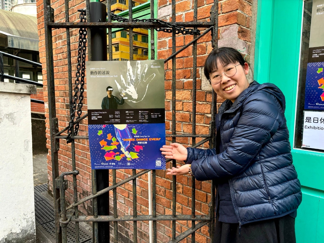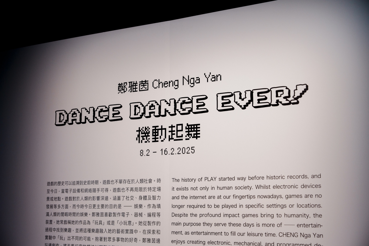 鄭雅茵“機動起舞”展覽現場。(攝影:Ray Leung) 從遊戲到舞蹈:互動裝置的創意實踐 “機動起舞”展覽的創作靈感來自跳舞遊戲,鄭雅茵通過展覽與表演探索舞蹈動作與數位互動的可能性。展覽中的一系列互動裝置設有不同的介面和感應方式,邀請觀眾以玩家或旁觀者的身份參與其中;而表演則進一步探討了遊戲的表演性,舞者與互動裝置進行現場展示,挑戰裝置的機制或表演的狀態,從而延伸觀眾對舞蹈和遊戲的想像。 展覽中的幾個互動裝置作品各具特色:例如《Bounce Your Body, Enjoy the Music》邀請參與者通過最基本的身體律動,透過傳感器將動作與音樂連結起來。只有保持節奏地“Bounce”,音樂才會持續響起。 《Bounce Your Body, Enjoy the Music》邀請參觀者與裝置互動,只有保持節奏地“Bounce”,音樂才會持續響起。 作品《Good Job, Keep It》參與者只需舉起手舞動,便會觸發系統生成的各種正面評價音效,為參與者提供純粹的肯定與讚賞,反轉了舞蹈遊戲中常見的負面評價機制。 而作品《不是舞池》頗為有趣,反轉了互動裝置和跳舞遊戲的常規思維方式。一旦裝置偵測到移動,所有效果便會停止,將靜止轉化為特殊的表演形態。 鄭雅茵與另一位青年藝術家孫禮賢共同參與了“藝術科技人才駐場計劃”。兩人在接近十個月的研究與創作中,重新想像聲音、科技與身體的關係,並試圖回答創作中長期以來的疑問:觀眾與表演之間的微妙關係?藝術家自身與藝術形式的連結?在這個人類似乎隨時能被科技取代的時代,身體的價值又該如何被重新審視? 成果展示:科技與藝術的對話 目前,“機動起舞”展覽正在牛棚藝術村的1a空間舉行。與此同時,同場還展出了青年藝術家孫禮賢的“動作的述說”。兩個展覽均為“藝術科技人才駐場計劃”的成果展示,展期至2月16日。 鄭雅茵希望,這次展覽能讓觀眾在參與互動或觀看表演的過程中,重新思考舞蹈、遊戲與科技之間的關係。“我希望這不僅僅是一場展覽,更是一個啟發大家思考的契機。” “藝術科技人才駐場計劃”無疑為年輕藝術家提供了一個實現創意與技術結合的平台。鄭雅茵表示,這樣的計劃不僅讓她得以將理論轉化為實踐,還讓她在藝術與科技的交匯點上看到了更多可能性。“未來,我希望能繼續探索這條路,讓科技與藝術碰撞出更多新的火花。”(完) 【編輯:黃璇】