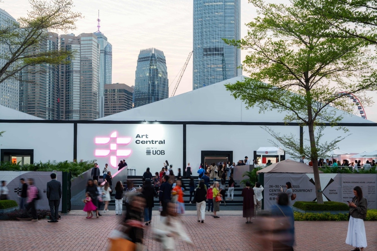 香港新聞網3月31日電 第十屆Art Central於3月26至30日(3月25日為貴賓預覽)舉行,並全程開放銷售交易。作為香港藝術周的重點活動,此次展會在中環海濱盛大回歸,規模創歷史新高,共有來自40多個國家及地區的108間畫廊和超過500位藝術家參展。展會期間,呈現了一系列創意項目,如裝置藝術、表演、影像藝術、講座、導賞團以及工作坊等,也得到了香港特區政府文化體育及旅遊局的“文化藝術盛事基金”的支持。 自2015年開幕以來,Art Central致力於推廣亞洲及其他地區的當代藝術家,並在香港的藝術生態中扮演重要角色。今年的展會吸引了超過43,000名本地及國際訪客,展示了國際知名藝術家及新興藝術家的作品。策展團隊擴大,鄭得恩再次擔任藝廊展區策展人,Aaditya Sathish 則負責展會創意項目,陳瑞琦策劃的Studio Central專注於三位來自香港和廣州的創意人士。