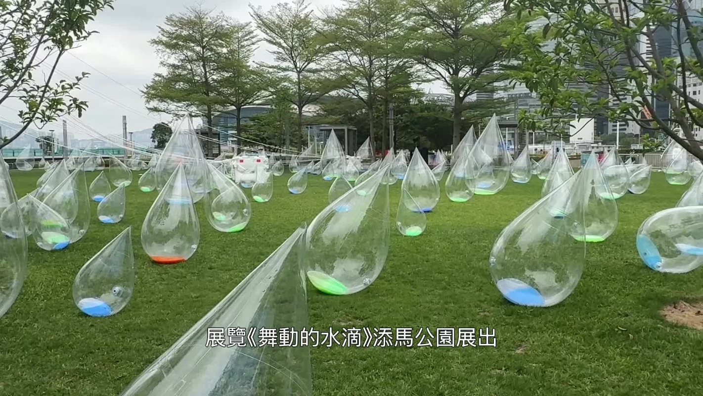現正展出的《舞動的水滴》包括百多個不倒翁小水滴裝置,以及18.8米高的巨型水滴裝置,曾在威尼斯、羅馬、上海、杭州和迪拜展出。巨型水滴裝置將於5月份擴大至28.8米。馬興文表示,位於場地中央的巨型水滴象徵祖國,周圍簇擁的小水滴則代表香港十八區的兒童,寓意團結共融。