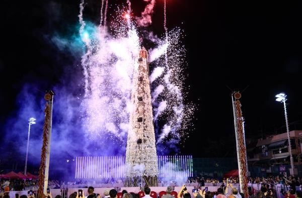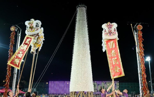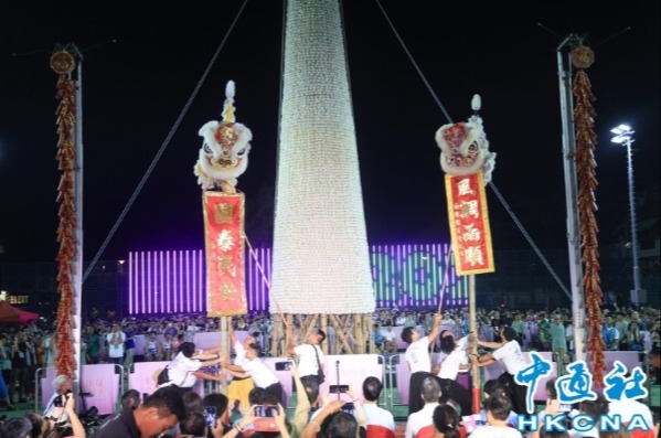 【字幕】5月6日凌晨,香港長洲太平清醮“搶包山決賽”在長洲北帝廟遊樂場足球場舉行,吸引千餘市民及旅客圍觀。