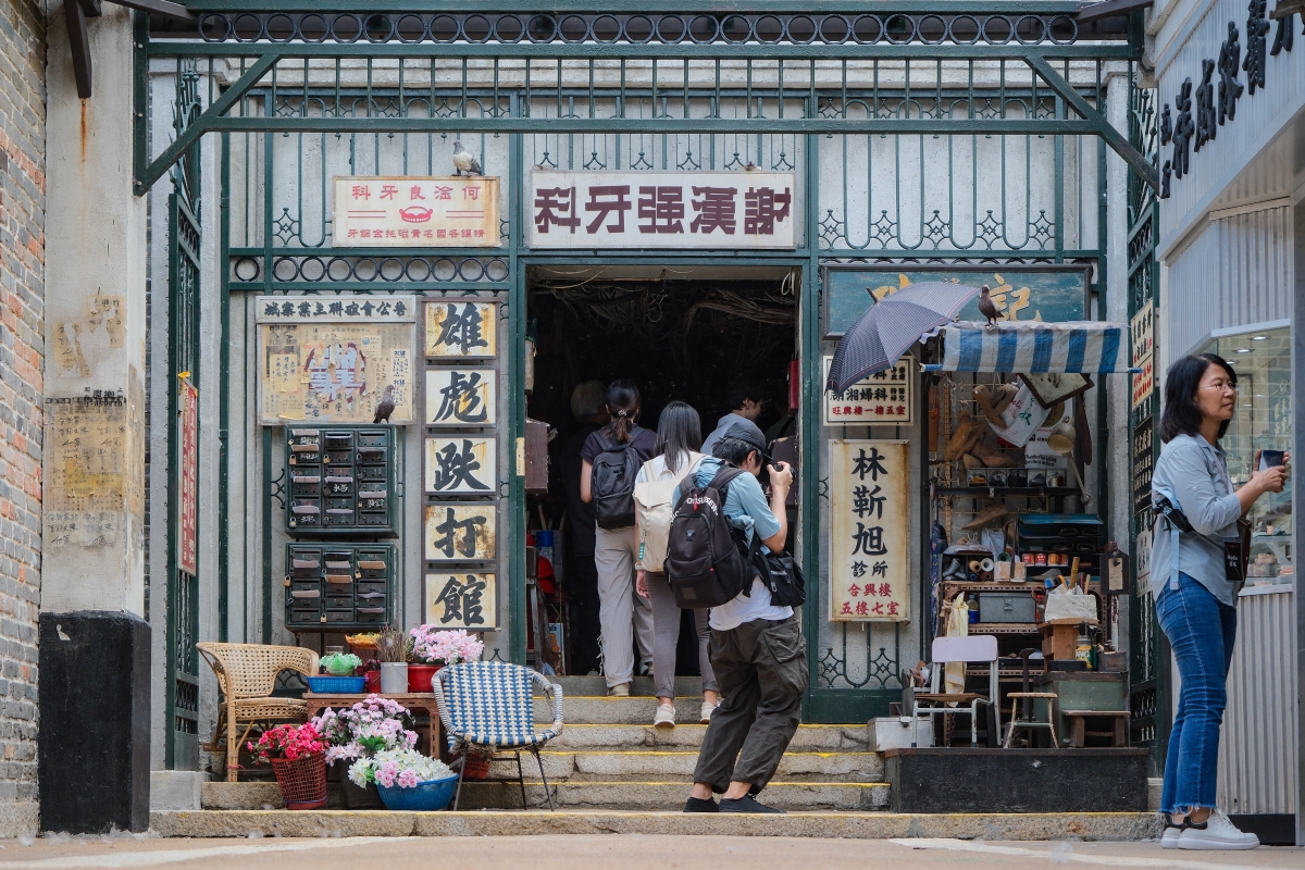 政務司副司長卓永興、財政司副司長黃偉綸,以及文化體育及旅遊局局長羅淑佩主持“九龍城寨光影之旅”電影場景展開幕儀式。