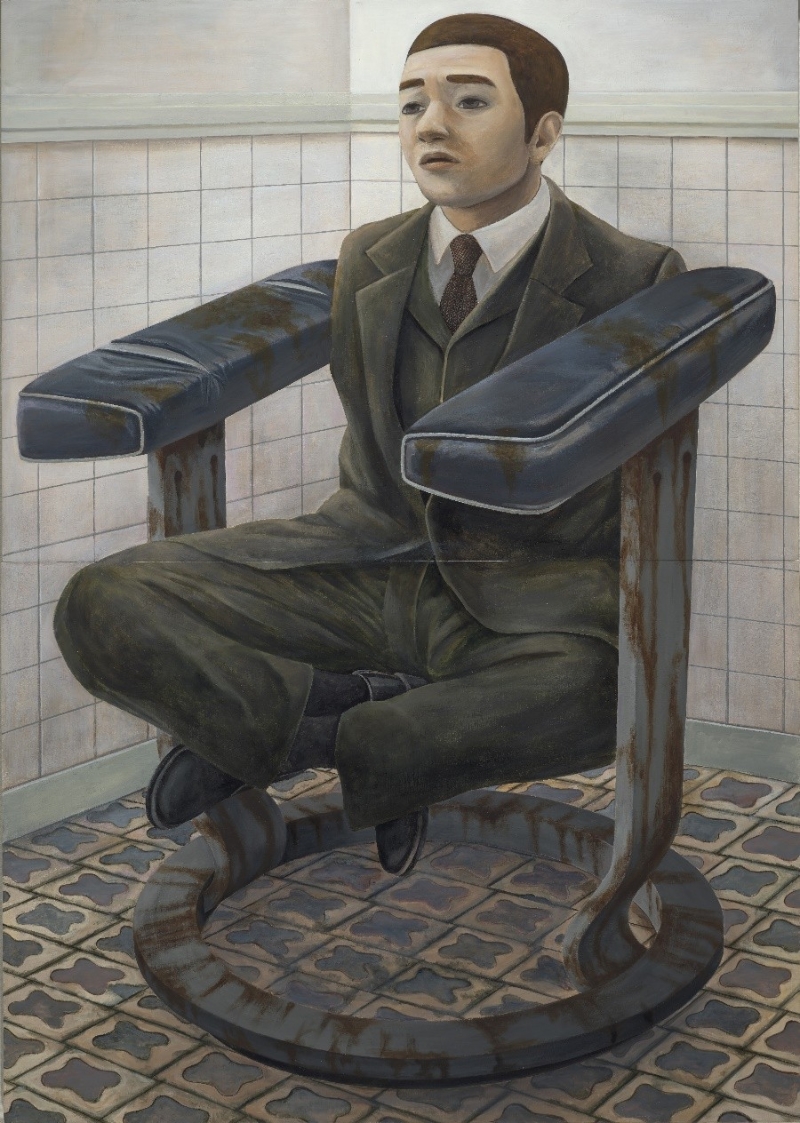 石田徹也《空置大廈內的經理座位》。(邦瀚斯供圖) 《空置大廈內的經理座位》是石田最具代表性的作品之一。畫面中,一位西裝革履的經理,盤腿化作一張破舊的椅子,雙臂與金屬支架詭異融為一體,眼神空洞,表情麻木,象徵階級社會中個體的卑微與無力。這幅作品以超現實的手法,諷刺了職場中“懼上欺下”的普遍心理,並隱喻經濟泡沫破裂後社會的失落與絕望。經理的形象既是壓迫的承受者,也曾是壓迫的施加者,反映人在階級結構中的多重角色。畫面背景的空置大廈與老化的椅子,進一步強化社會的荒涼與無價值感。石田通過這幅作品,不僅批判了日本社會的階級固化,也揭示了現代人在資本與權力主宰下的異化與孤獨。 1973年出生的石田徹也,懷揣著成為畫家的夢想,在日本泡沫經濟的低迷中探索藝術真諦,卻於活躍了短短十年後便因意外去世。而他的作品在他辭世後才遂漸被發掘,僅存217幅,更顯珍稀與獨特。其作品被譽為日本當代藝術的重要代表,更曾獲選在威尼斯雙年展主場館展出,並於2019年在西班牙馬德裡索菲婭王后國家藝術館舉行回顧展,引起極大反響。(完) 【編輯:黃璇】