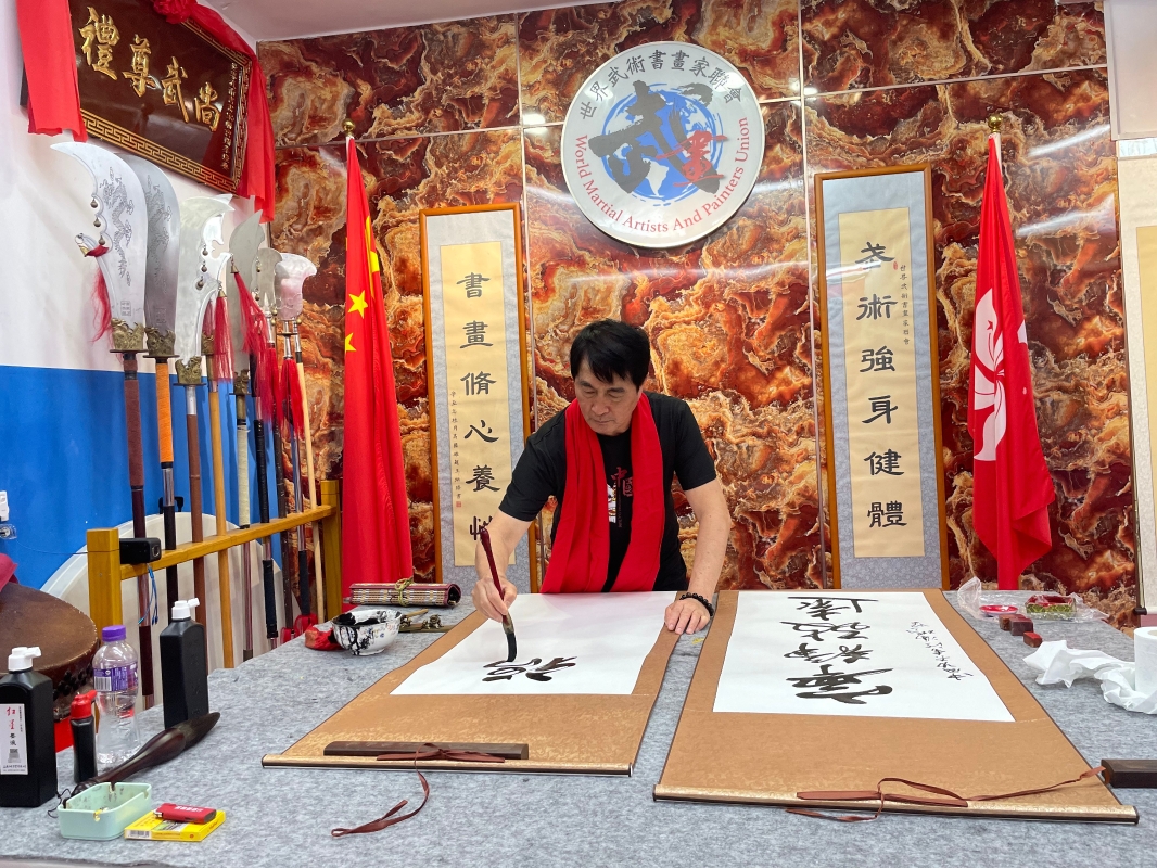 世界武術書畫家聯會創會主席高國雄(左)、中國功夫書法家馮礎堅。 馮礎堅作為中國功夫書法的代表性人物,身兼世界武術書畫家聯會副主席等多個重要職務,在武術與書法融合領域成就卓越。他擅長行草書法,將武術的輕重徐疾、動感氣韻、形象意境、精神勁力融於書法藝術,其功夫書法作品曾多次獲全國及國際大賽獎項,並被諸多機構收藏。中國功夫書法研究院作為世界武術書畫家聯會的會員單位,一直致力於傳承和弘揚中華優秀傳統文化,推動武術與書畫藝術的深度融合。此次向香港各界精英授予榮譽,是研究院拓展文化交流版圖的重要舉措。獲授榮譽的香港各界精英們來自不同領域,他們在各自的行業中成績斐然,此次接受榮譽,也表達了對中國功夫書法藝術的濃厚興趣與支持。 活動現場,馮礎堅先生親自為榮譽獲得者頒發證書,並介紹了功夫書法的獨特魅力與文化內涵。每一幅贈予的功夫書法作品都飽含著對香港繁榮發展的美好祝願,以及對中華傳統文化傳承創新的期許。 此次活動不僅提升了中國功夫書法研究院在香港的知名度和影響力,更為香港特區注入了新的文化活力,促進了武術與書法兩大傳統文化在香港的交融與發展。未來,中國功夫書法研究院計劃在香港舉辦更多文化交流活動,進一步加深兩地在文化藝術領域的合作與互動,共同推動中華優秀傳統文化走向世界。 【編輯:洪少葵】