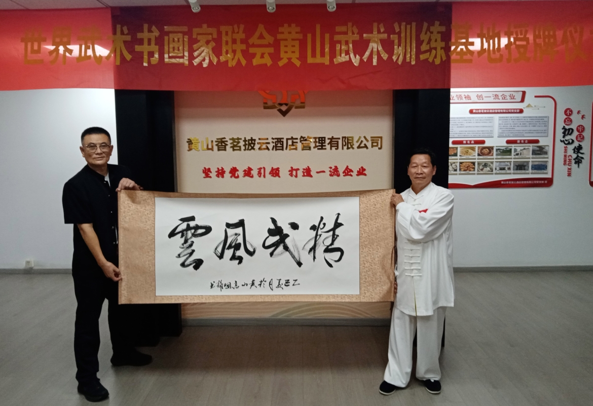 香港新聞網6月18日電 由中國文化進萬家工作委員會指導,中宣盛世國際書畫院聯合黃山市蘭亭書畫院、新安書畫研學館等單位聯合主辦的“書畫進萬家,詩文頌山河”全國文藝名家大美黃山行和書畫展活動6月16日在安徽省黃山市舉辦。活動現場,中宣盛世國際書畫院與世界武術書畫家聯會正式簽署戰略合作協議,標志著“文武雙璧”融合發展的新篇章。世界武術書畫家聯會創會會長、中國功夫書法研究院榮譽院長盧文快向北京中宣盛世國際書畫院贈送“世界武術書畫家聯會紀念旗”。 世界武術書畫家聯會主席高國雄表示,北京中宣盛世書畫院與世界武術書畫家聯會戰備合作單位的揭牌儀式,代表聯會創會長盧文快,常務副主席與及全體同仁表示熱烈的祝賀和友好的祝願!書畫與武術,是中華民族傳統文化的瑰寶。一個以筆墨傳承精神,一個以拳腳展現力量,看似不同,實則相通,都蘊含著深厚的文化內涵與民族精神。此次雙方攜手合作,是文化與體育的跨界融合,旨在搭建一個更廣闊的交流平台,讓書畫藝術與武術精神相互交融、相互促進。展望未來,雙方將發揮優勢,開展形式多樣化的活動,比如聯合舉辦高水準書畫展覽、創作武術書畫交流活動等,共同推動中國傳統文化的傳承與創新,走向世界,讓世界更多的武術書畫愛好者更加了解關注和熱愛中國的民族傳統文化。武術與書畫同為中華文化瑰寶,此次合作將探索“以武入書、以書傳武”的藝術表達,推動傳統文化跨界融合。 後期雙方還將聯合舉辦“武風墨影”等主題展覽,推出聯名藝術作品,并在香港設立長期戰略合作創作基地,促進武術精神與書畫美學的深度對話。