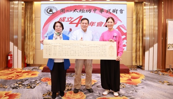 世界武術書畫家聯會主席高國雄在現場表演書法與功夫。