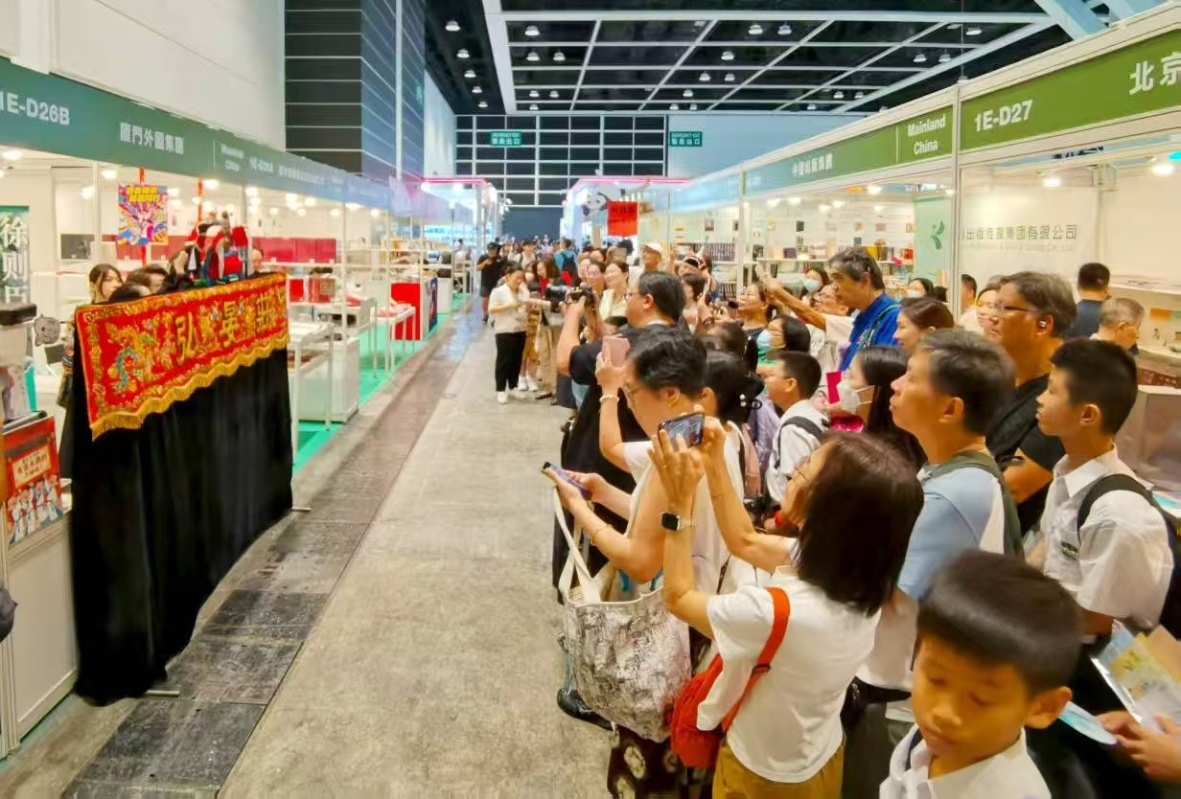 書展場內香港耀華文化慈善基金會策劃《中華傳統美德故事》新書上市暨木偶劇沉浸展演吸引眾多現場觀眾。 【編輯:洪少葵】