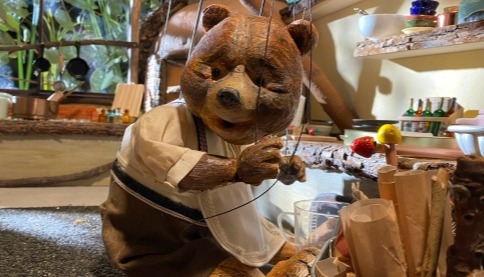 國家級非遺項目木偶戲代表性傳承人、80多歲的藝術家莊陳華表演布袋木偶戲《水滸傳-大名府》。