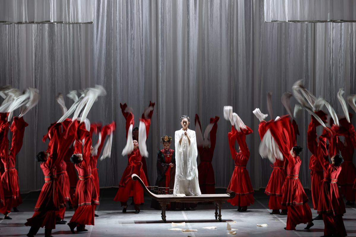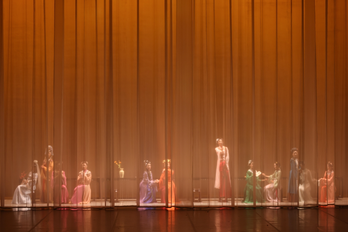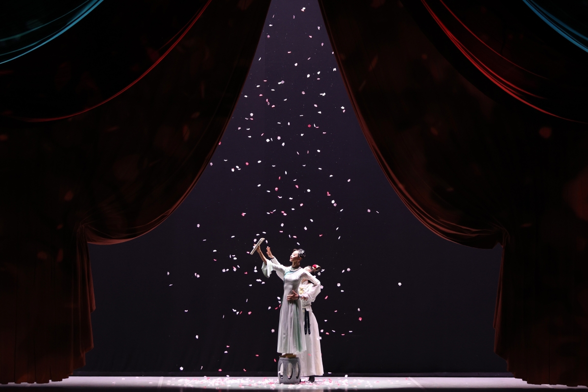 首演現場,一襲紅衣的賈寶玉在舞台上現身,輕撩帷幔、靜推屏風,“金陵十二釵”的命運也隨之緩緩展開,演員們與觀眾穿越時光,共同遊歷在紛繁熱鬧的大觀園。歷時140分鐘的演出座無虛席,謝幕時,現場氣氛熱烈,掌聲與歡呼聲持續十幾分鐘,演員多次返場謝幕。