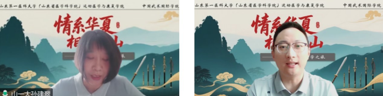 泰山巍巍,黃河泱泱,齊魯大地承載著中華文明厚重的篇章。山東第一醫科大學(山東省醫學科學院)運動醫學與康復學院黨委書記孫建翠在主持中指出:“活動以雲端研學,深化文化認同,通過武術實踐與文化溯源雙路徑,鑄牢香港學子的中華民族共同體意識”。泰安市文化和旅遊局市場推廣科桑運昌科長代表泰安市文化和旅遊局向香港學子生動介紹泰安文旅資源,並誠摯邀請香港學子來泰安旅遊,欣賞泰山風景,體驗泰山文化。山東第一醫科大學(山東省醫學科學院)台港澳事務辦公室主任李建民線上參會。中國武術國際學院黃宇帆院長表示:“本次線上研學別開生面,通過雲端這座特別的橋樑,將這份文化瑰寶呈現給香港的年輕朋友,可以讓大家沉浸式觸摸到泰山的精神脊樑,感受到大汶口先民的智慧光芒。”研學活動中山東第一醫科大學的多位教授、資深專家,分別於不同主題進行了分享及交流。讓香港青少年在屏幕前感受雙手劍的凜然氣勢,體驗八段錦的鬆靜自然,凝望泰山石刻的滄桑厚重,驚歎大汶口陶器的遠古靈光,一條跨越山海的民族文化血脈已在悄然間溫熱湧動。