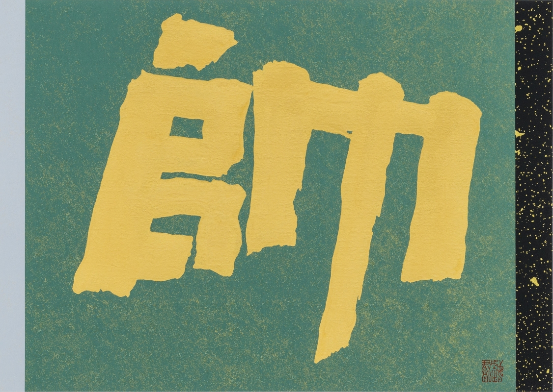 《帥》, 粉蠟箋、日本金箔 32 x 65 cm,2023年 圖片由藝術家及明畫廊提供 在文化全球化、視覺多樣化、市場跨界化、觀者多元化的當代社會進程中,現實激進的前行速度似乎早已對個體生長速度進行了規訓和牽引,一種無形的鏈條和幾面牆,悄無聲息的阻擋住日常與嚮往日常的心。心靈的想像力以及藝術無窮的創造力在某個階段被迫妥協,繼而無奈的失去些許生機與活力。這種被共識壓力和恐懼催化的績效社會,其現實文化體制市場產生了有關需求“日常”欲望的神經系統的機能痛感。不過,這類神經系統的機能痛感,從某種程度上來講,亦使部分性格極為敏感的個體催生出一種直面痛苦的勇氣;一種沉醉於日常之平淡的淡然;一種在創傷中塑造思想的復原力;一種和績效社會、點贊社會和諧共存的生存策略,馬越君則為其一。