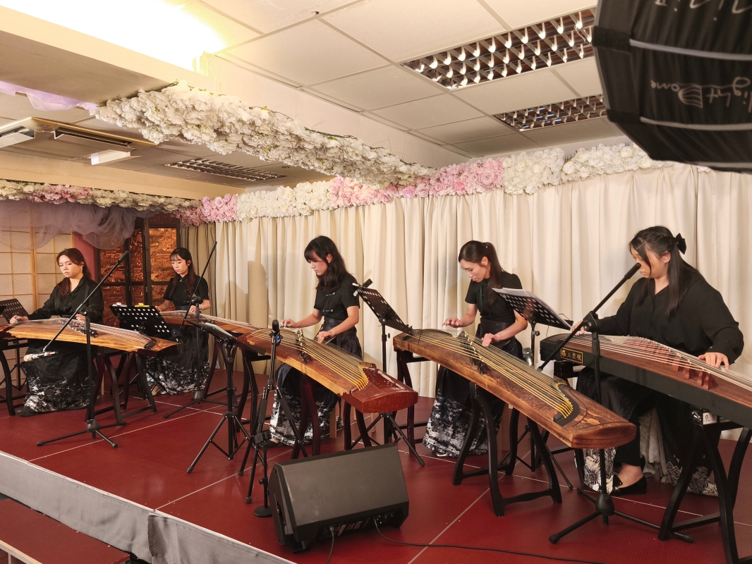 千金古箏表演團團長鄭文妮(左)等成員在演奏。