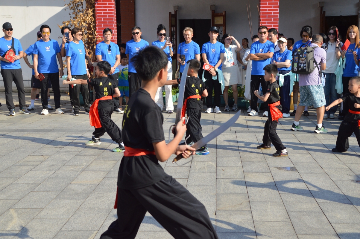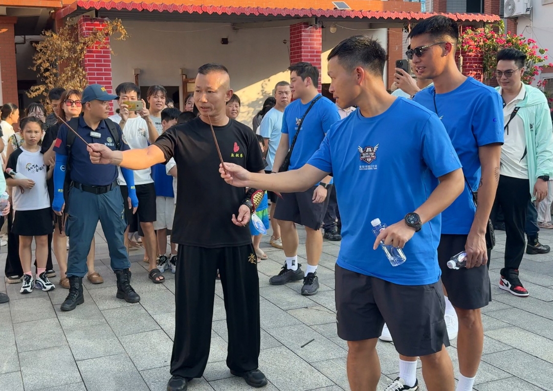 10月2日,漳州龍海月港古鎮格外熱鬧,香港精裝明星足球隊的成員到古鎮進行文化交流活動。當天下午古鎮的主街已經聚集了大批熱情的民眾,一睹香港精裝明星足球隊風采。龍海區五祖拳文化交流協會會長莊百堅、秘書長劉毅勇、監事長林志龍等協會部分班子成員親臨現場。活動的核心環節是觀看非遺項目-五祖鶴陽拳的表演。表演在古鎮古厝石埕進行,隨著激昂的鑼鼓聲響起,小拳師們身著傳統練功服精神抖擻,動作剛勁有力,招式行雲流水,時而如猛虎下山,時而如靈猿攀枝,每一個動作都精準到位,展現出五祖鶴陽拳的剛柔并濟之美。香港明星足球隊的成員們看得十分投入,不時拿出手機拍照記錄,臉上滿是贊嘆之情。表演結束後,幾位明星隊員還主動上前,向小拳師們請教基本招式,現場氛圍輕鬆又融洽。在交流中,一位足球隊成員表示,這是他第一次近距離接觸五祖鶴陽拳,深深被中華傳統武術的魅力所折服,也感受到了月港古鎮深厚的文化底蘊。而當地的拳師則希望通過這樣的交流,讓更多人了解五祖鶴陽拳,讓這門非遺技藝得到更好的傳承與發展。