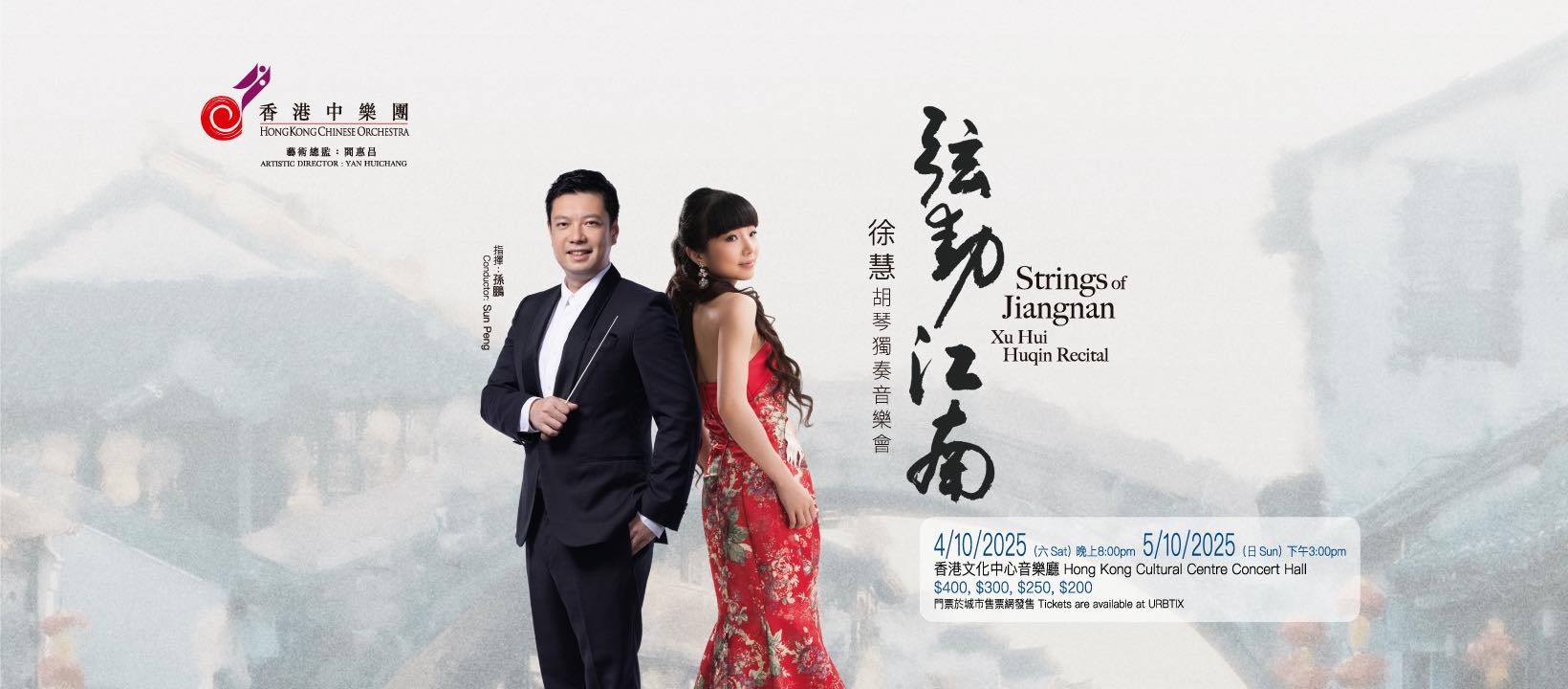 香港新聞網10月3日電 香港中樂團10月4至5日舉行兩場《弦動江南 — 徐慧胡琴獨奏音樂會》,由著名胡琴演奏家徐慧擔綱獨奏,孫鵬擔任指揮。是次演出將採用香港中樂團研發的“環保胡琴系列”,包括環保二胡、低音二胡及京胡,精選八首自二十世紀至當代的代表作品,展現胡琴多變音色。胡琴自宋元以來被譽為“中國的歌唱樂器”,擁有悠久的歷史、獨特的音色、強烈的感染力,表現出豐富的情感,成為中國音樂中最具代表性的樂器之一。音樂會曲目由劉天華《病中吟》揭幕,不僅是他首部二胡作品,更標誌著二胡由伴奏走向獨奏舞台;隨後失明流浪藝人華彥鈞(阿炳)的《二泉映月》由以低音二胡與樂隊版本演繹,透過彭修文的編配更添厚重管弦質感。當代作品方面,劉文金《如來夢之三.火—彩衣姑娘》由徐慧與琵琶首席張瑩合奏,舞蹈感鮮明;趙季平的《心香》為同名電影配樂改編而成的二胡協奏曲;王丹紅《趕腳的人》選自《永遠的山丹丹》第五樂章,生動再現舊時陝北地區趕腳人的悲苦。《絢彩江南》則由徐慧聯同琵琶首席張瑩、笛子演奏家林育仙攜手演繹。戲曲篇章方面,《氣衝霄漢》選至現代京劇《智取威虎山》,旋律鏗鏘激昂,展現了京劇特有的英雄豪情與舞台張力。 音樂會最後壓軸演出,是香港首演美國作曲家宮愛思(Alexis Alrich)為徐慧量身創作的《長恨歌》。徐慧畢業於中央音樂學院,師從多位名家,現任香港中樂團署理二胡首席,亦活躍於國際舞台,曾於南京、北京、香港及美國加州舉辦個人獨奏音樂會。近年,她主演二胡紀錄片《似是故人來》更獲第十三屆北京國際電影節短視頻單元優創作品殊榮。