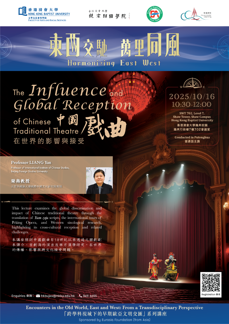 註:“中國戲曲在世界的影響與接受”為香港浸會大學饒宗頤國學院“跨學科視域下的早期歐亞文明交匯”講座之第二講。(完) 【編輯:黃璇】