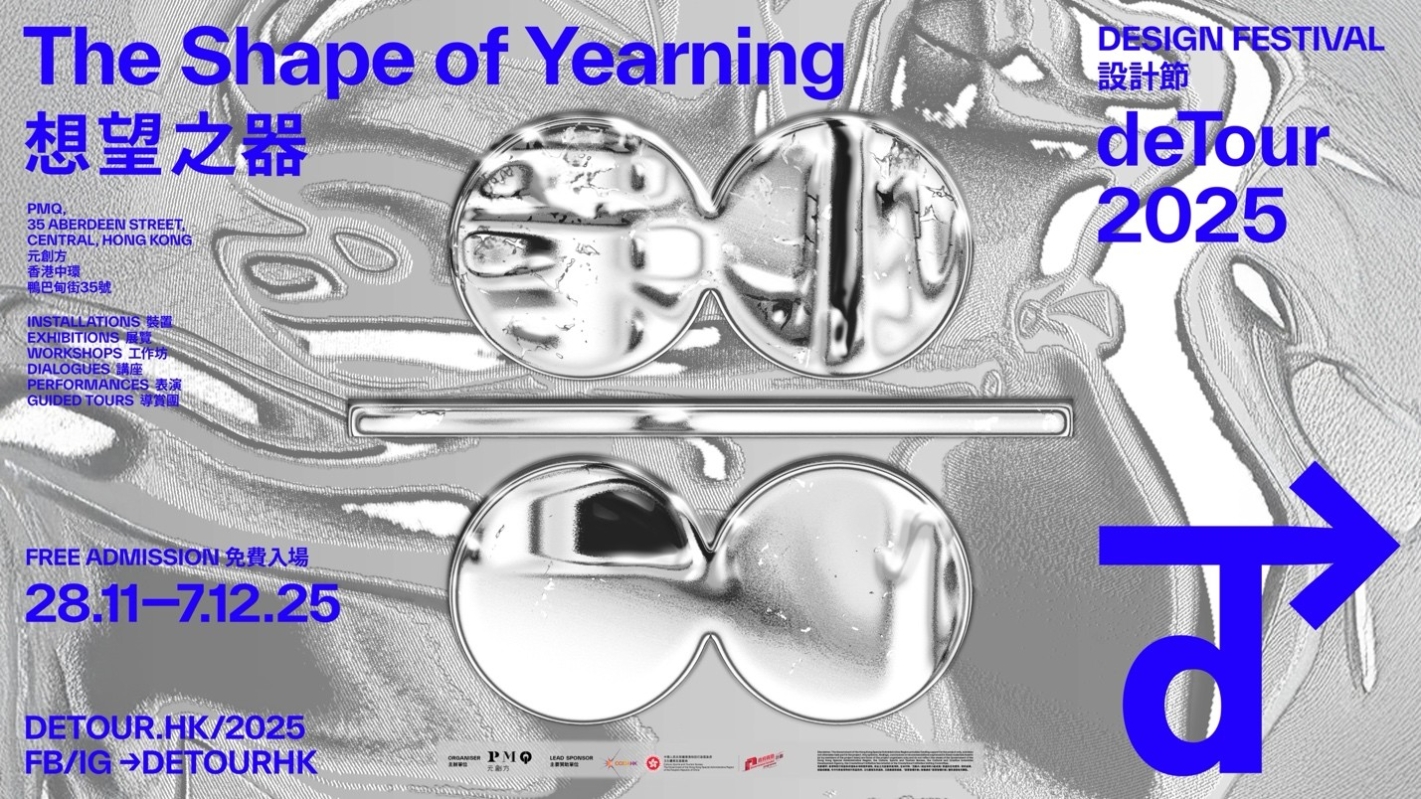 香港新聞網10月20日電 香港年度設計盛事deTour 2025設計節將於2025年11月28日至12月7日,於中環蘇豪區設計地標PMQ元創方舉行。由PMQ元創方主辦,並獲文創產業發展處資助,本屆deTour設計節將再度匯聚本地與國際的創意力量,呈獻一場激發靈感的設計盛會。作為新晉設計師的搖籃,PMQ元創方致力連結設計社群,促進文化交流與傳承。 今年deTour設計節將橫跨PMQ元創方地面廣場及智方(Qube),展開一系列前瞻性展覽、互動裝置及節目,當中包括創意工作坊、設計對話、表演及導賞團,構建一個讓設計與公眾深度交流的創意平台。 deTour 2025設計節以“想望之器”為主題,透過多元、創新且具實驗性的作品作出回應。本屆續由設計師兼策展人陳濬人領航,為這場香港年度設計盛會注入靈魂,持續激發本地與國際設計人才的創作力與思想深度。 今年主題“想望之器”圍繞一個值得深思的問題:為何人類擁有想像“比當下更好”的能力?這份無盡的渴望,既是創造力的泉源,也揭示我們內心不安的根源。透過策展人提出的“設計三問”,誠邀觀眾從不同層面觀看作品,引發他們反思與探索日常生活的設計。deTour 2025設計節將由此主題出發,透過一系列展覽與活動,重新審視設計不僅是功能或美學的實踐,更是一種承載思想、渴望與希望的容器。