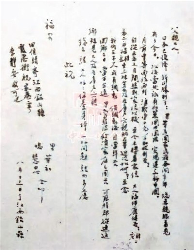 侯文理家庭合影。 侯文理:我雖然做公事多,但終於落得兩袖清風 希賢我兒: 現在我們的國家是要在新民主主義的號召下來建設新的人民共和國了,那是要人盡其才物盡其用了。 這裡,我要給你們規定幾件事,并且要你們切實地做到: 一、每天記日記,按月給你母親看,同時給你們改;二、每天放學回來有一定的自修時間,不懂的地方,可請問胡先生給你們解釋;三、大小楷每天要不間斷的(地)寫,與日記同時交你母親看,將來我西南回來,當知你們讀書的情形了;四、在農忙要幫助你二叔做事情,我們家道清貧,樣樣都要從儉樸上去做,我雖然做公事多,但終於落得兩袖清風,仍不失為清貧,值得你們學的就是“不貪不拍”,希望你們永遠記著這四個字;五、在學校裡要尊敬教師、友愛同學,虛心學習;六、由家到桃山上學路太遠,放學回家不能在路上玩,免得你祖父母及你二叔父母掛心。 以上六點,我隨想隨寫,希望你們確實做到,明天我即赴西南工作,希望不要忽視我這封特殊函囑。 特囑并盼努力學習! 父諭 30/9 (節 選)