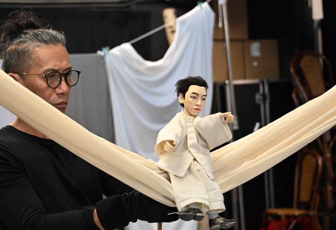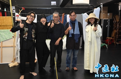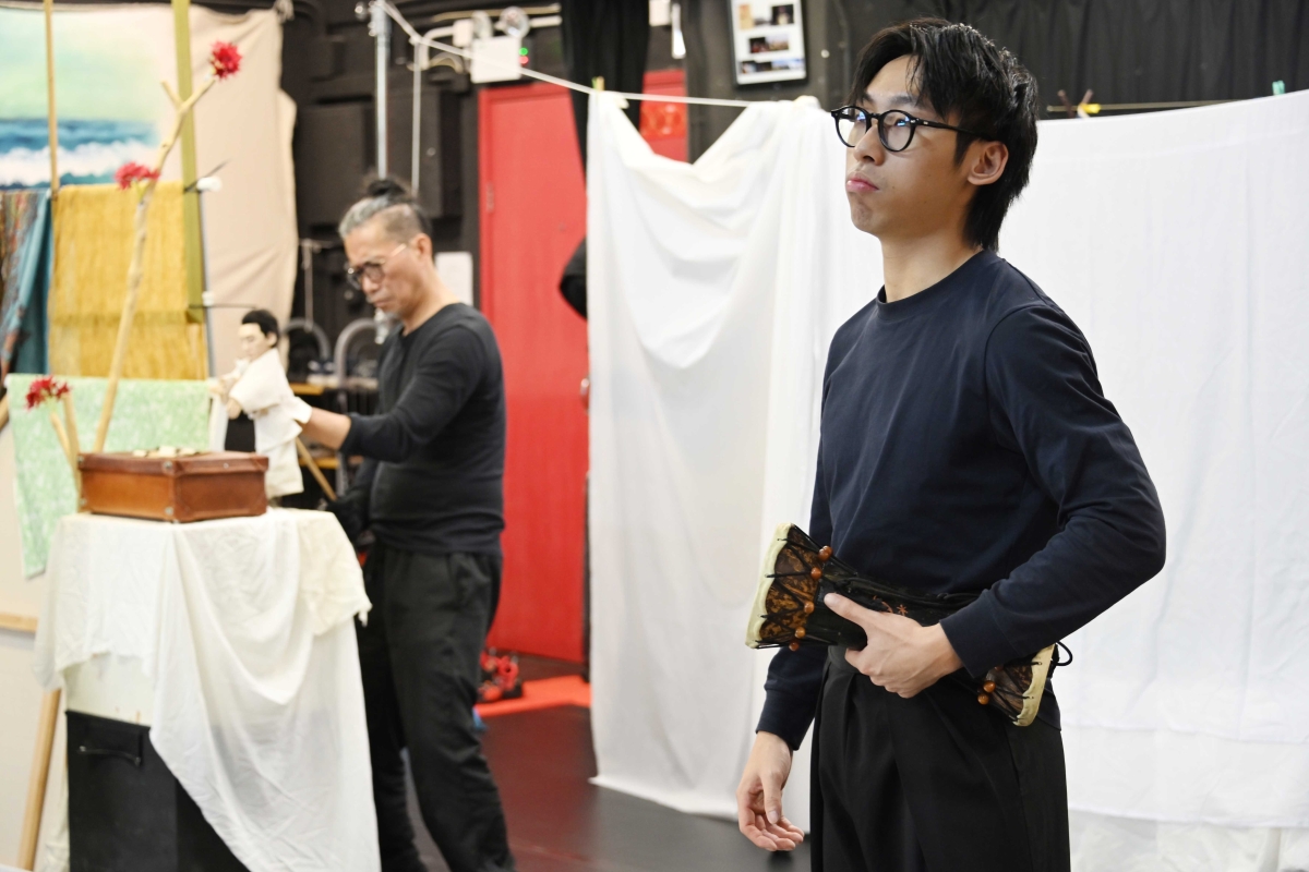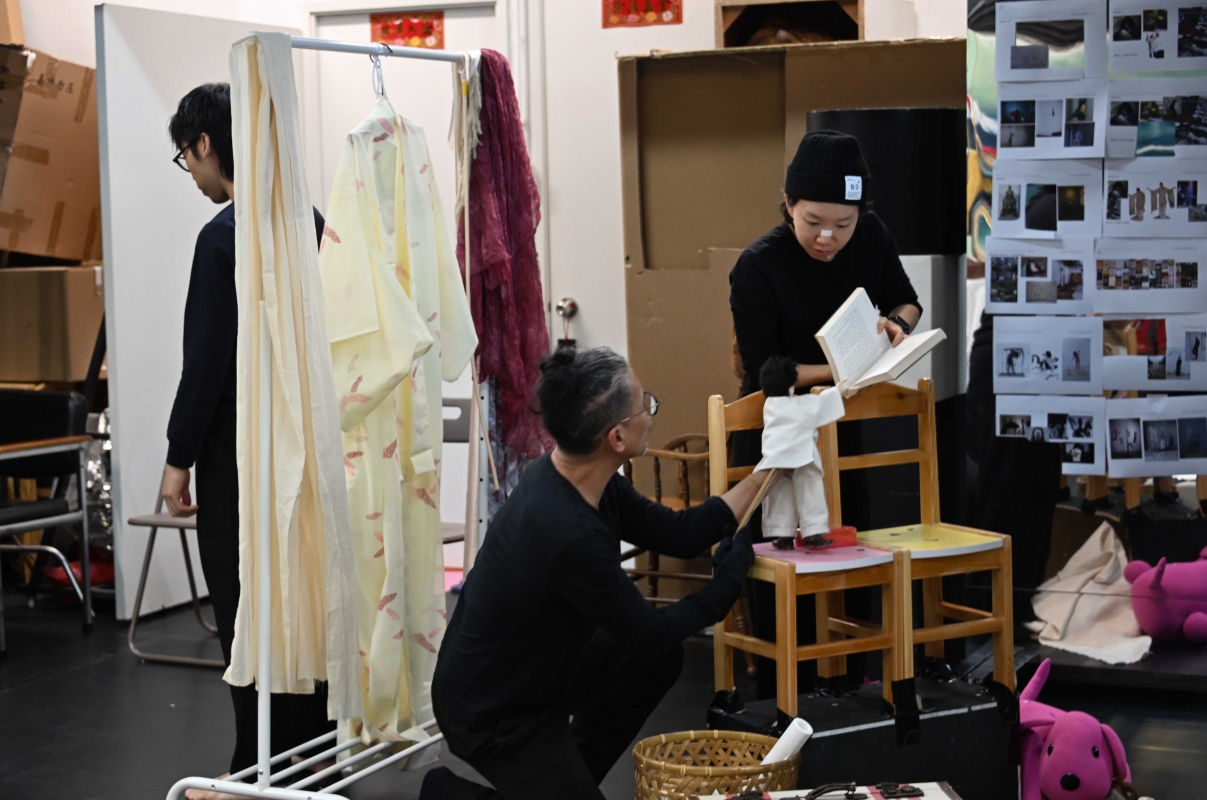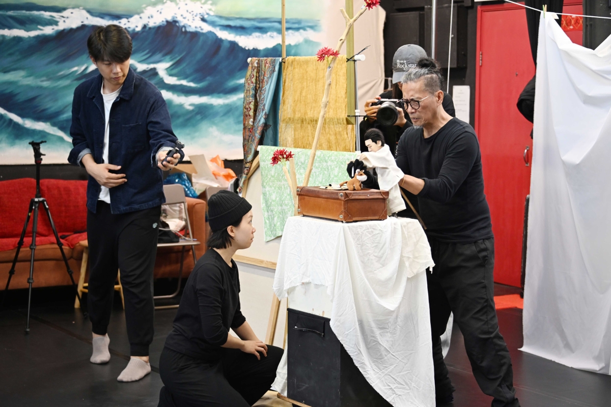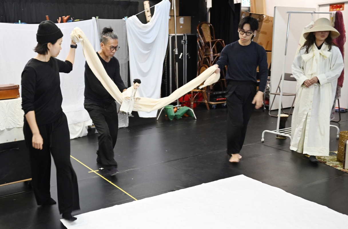 浪人劇場人與偶同台的《象是笨蛋》文學劇場節目將在11月28至30日在香港文化中心劇場演出。圖為主創人員在加緊排練。 【編輯:洪少葵】