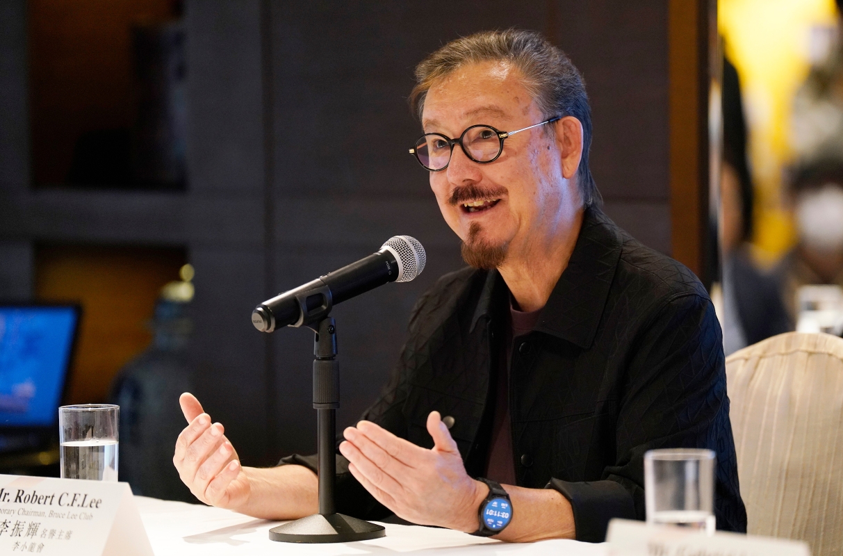 李小龍胞弟李振輝(右三)和藝人田啟文(左三)等嘉賓出席記者會。