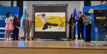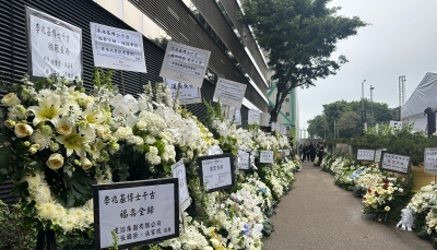 一眾嘉賓在李小龍臨時紀念牌前拍照留念。