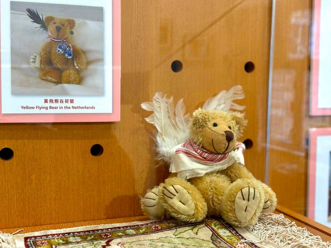 西西第一隻自製布偶叫“黃飛熊”。(香港中通社記者 黃璇攝)