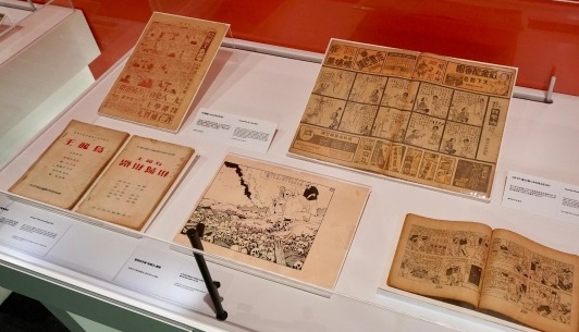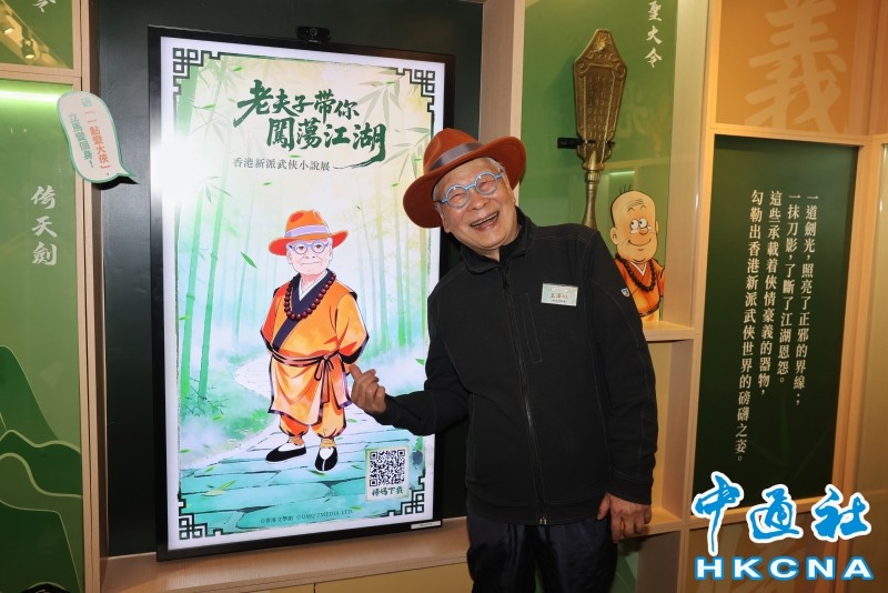 圖為《老夫子》第二代作家王澤體驗通過AI技術生成俠客形象圖片。 香港中通社記者 謝光磊 攝 2月4日,“老夫子帶你闖蕩江湖——香港新派武俠小說展”在灣仔香港文學館揭幕。展覽由香港賽馬會慈善信託基金捐助,香港文學舘與老夫子哈媒體公司聯合主辦,並獲政府相關部門支持。 九大場景與五座玻璃鋼雕塑所構建的趣味江湖展現在茂蘿街七號。在這裡,老夫子、大番薯、秦先生等經典漫畫人物,打破文學的靜默與漫畫的框線,執起長劍,引領觀眾踏入一個既熟悉又新奇的文武江湖,帶領觀眾輕鬆汲取武俠文學知識。 展覽突破傳統,以跨媒介、互動式及場景化藝術呈現,探索武俠文學與漫畫藝術間的創新轉化。