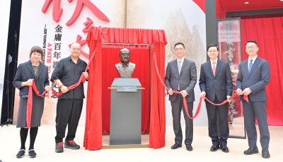 圖為香港特別行政區行政長官李家超在開幕典禮中以視像致辭表示祝賀。 香港中通社記者 謝光磊 攝 正如特首李家超當天在視頻致辭中所言,好的文學作品是社會重要的精神資源。他說,香港作家植根於中西文化交融的土壤,累積深厚的文學底蘊,創作出很多優秀作品,成為這座城市珍貴的文化資產。本次與“老夫子”的跨界合作,是一次文化創新與融合的嘗試,為推動文學普及提供新途徑。