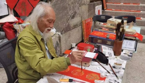 農曆新年臨近,在香港北角街頭,書法家陳鑫發師傅正忙於書寫春聯。(香港中通社圖片) 驅邪的桃符、迎新的吉語,千年流轉,今天在現代都市香港仍找得到存續的縫隙。無論是老師傅筆下的工整楷書,或新生代創意圖案,每一幅紅紙都是生活的祝願。當我們在方寸紅紙間尋找來年順遂,其實也在默默傳遞:願家人平安,願港人安樂,願這座城市仍擁有屬於自己的年味與溫度。(完) 【編輯:黃璇】