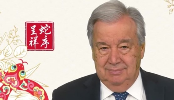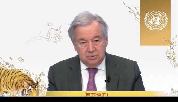 香港中通社2月10日電 2月10日上午,據聯合國官方微博消息,新春來臨之際,聯合國秘書長古特雷斯發表視頻致辭,向中國人民以及全球共慶春節的人們致以誠問候。視頻中,他還用中文“春節快樂”向中國人民拜年。