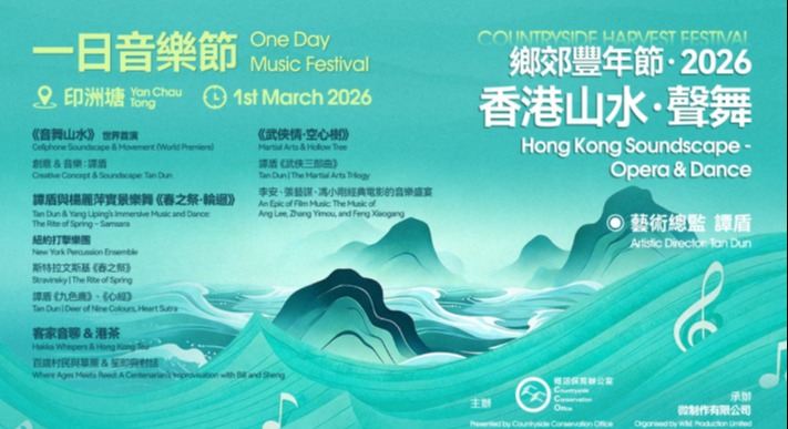 香港新聞網2月23日電 環境及生態局轄下鄉郊保育辦公室(鄉郊辦)將於3月1日舉辦“鄉郊豐年節2026:‘香港山水.聲舞’一日音樂節”,選址於獲國家生態環境部評選為全國“美麗海灣優秀案例”的香港大鵬灣之中的印洲塘。是次活動亦是第54屆香港藝術節“加料節目”之一。 本次音樂節邀得聯合國教科文組織全球親善大使、香港特區政府委任的“文化推廣大使”、國際知名作曲家兼指揮家譚盾大師擔任藝術總監及指揮,並特別為香港東北偏遠鄉郊創作全新音樂篇章。 譚盾大師以融匯中西音樂傳統、跨越文化疆界與突破藝術界限的創作理念享譽國際,屢獲國際音樂獎項,為當代具影響力的音樂家之一。