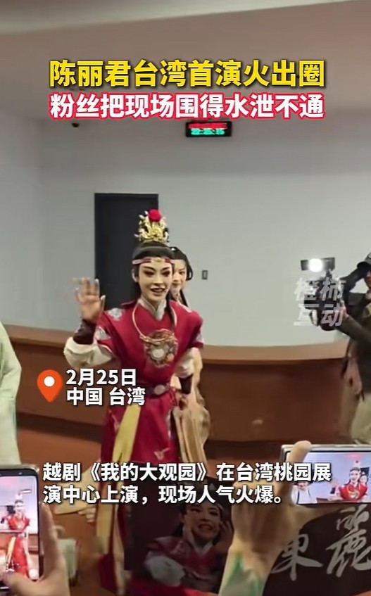 台灣巡演散場後,陳麗君與戲迷互動(視頻截圖) 綜合報道。2月24日,浙江小百花越劇團啟動2026年台灣巡演,四天內連演五場。其中,青春越劇《我的大觀園》於25日至26日在桃園連演兩場;《愛情的花園》越劇折子戲專場將於27日至28日在台北連演三場。 這是浙江小百花越劇團自2010年之後,時隔16年再度赴台灣演出。 今年台灣巡演現場座無虛席,觀眾覆蓋老中青跨世代群體,既有鍾情越劇藝術多年的資深戲迷,也有大量喜愛陳麗君的年輕觀眾,更有不少台灣家庭全家出動、陪伴長輩共賞經典。 劇場外,台灣戲迷們親手搭建應援花牆,散場後將陳麗君“包圍”,喊著要邀請她吃台灣小吃,讓她多來台灣。